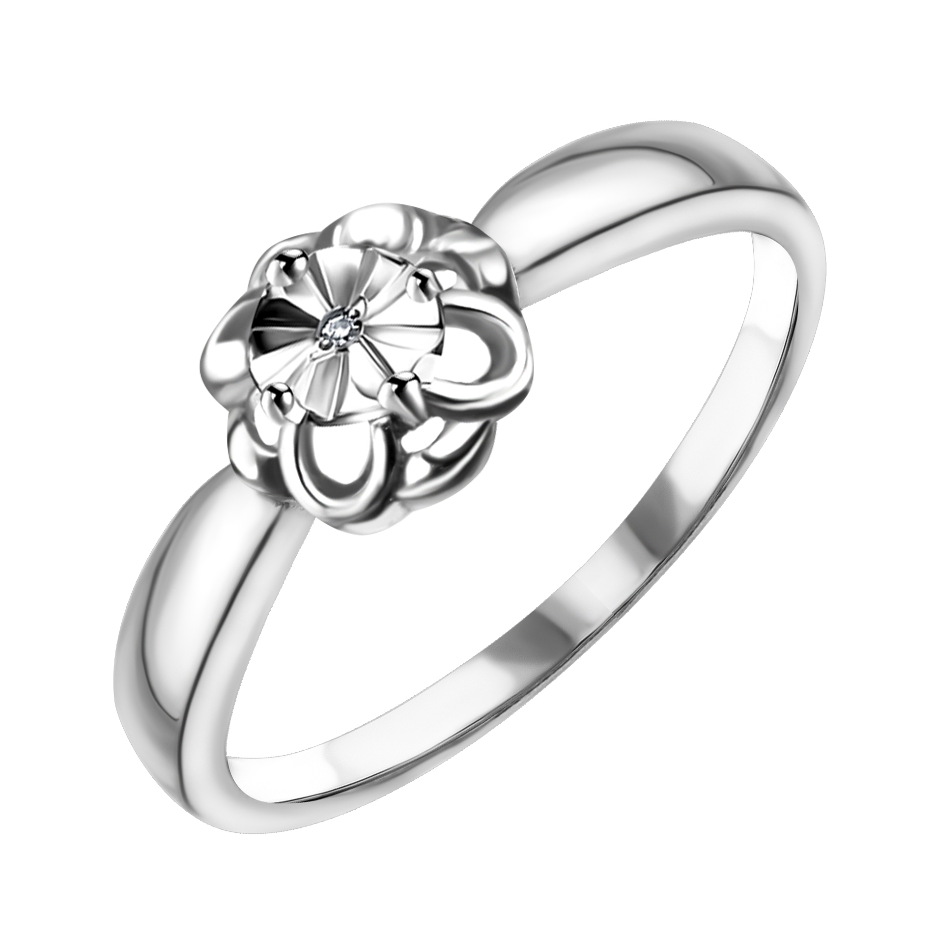 TEOSA Кольцо классическое с натуральным бриллиантом / серебро 925 пробы / украшение на подарок, на помолвку, на свадьбу