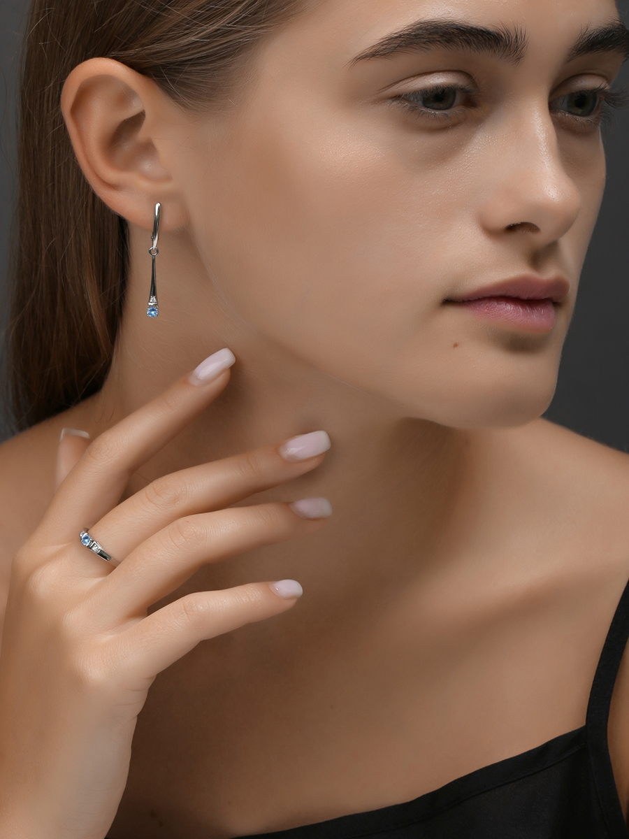 TEOSA Серьги с топазом и фианитами / классическое украшение / серебро 925 пробы