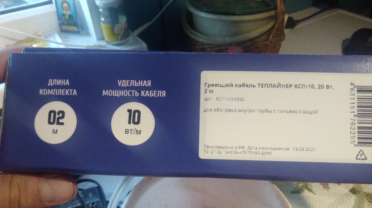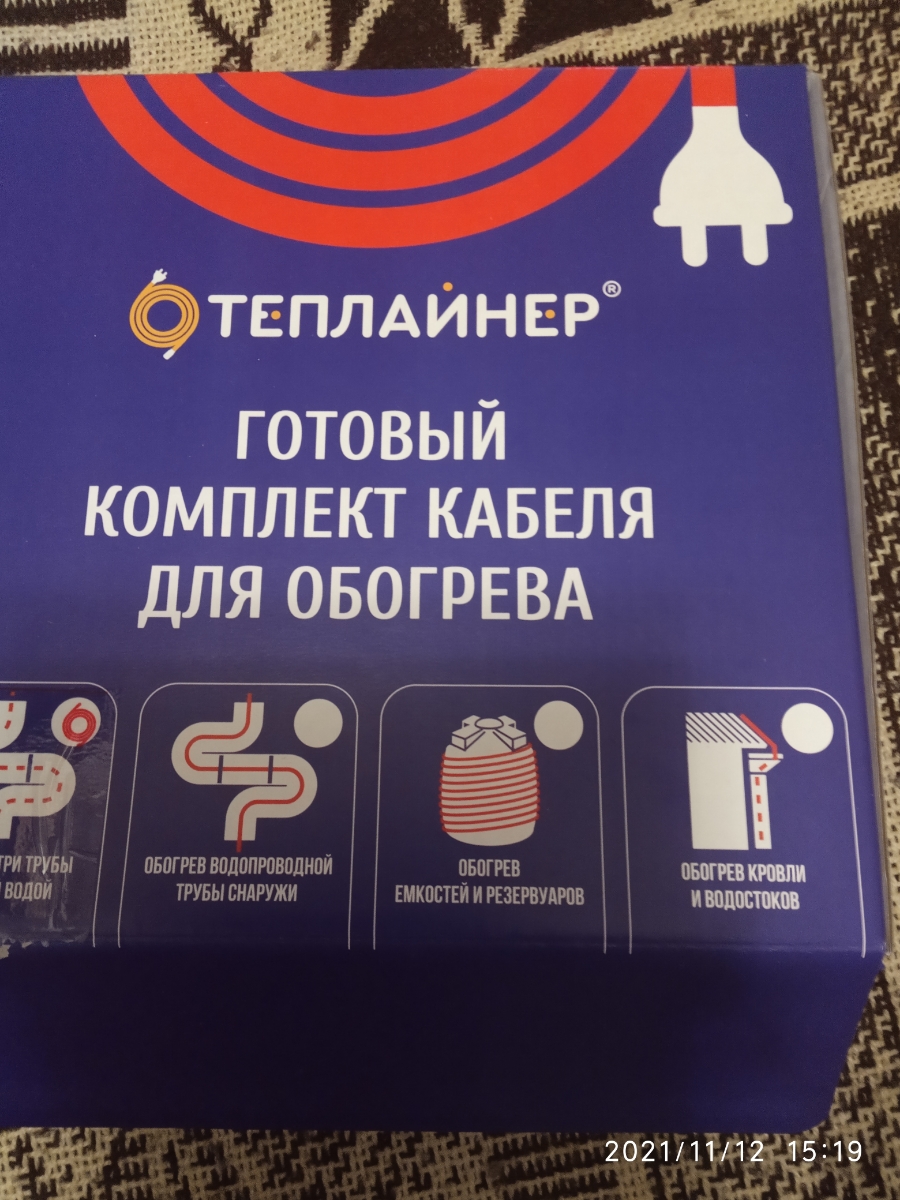 Греющий кабель Теплайнер в трубу, 12м 120Вт