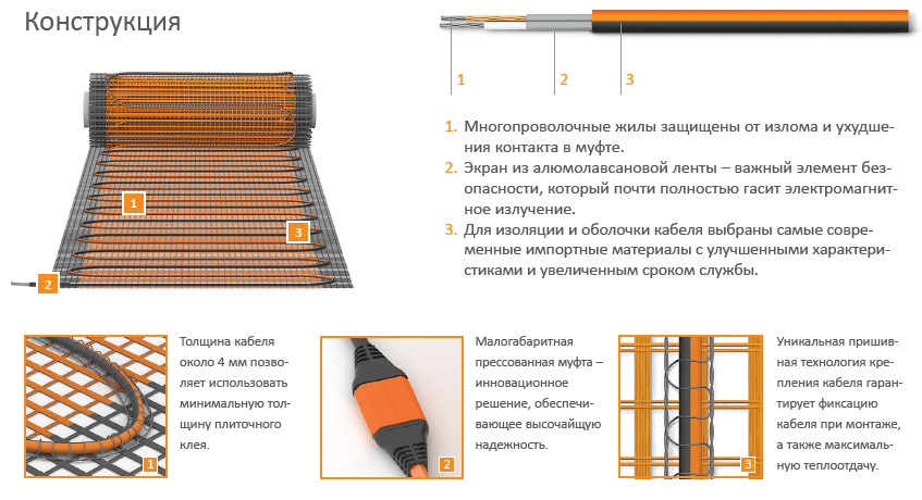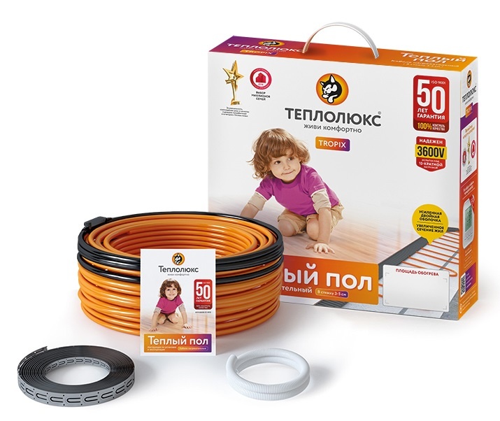Теплый пол электрический, кабель нагревательный Теплолюкс Tropix ТЛБЭ, 32,0 м/630 Вт