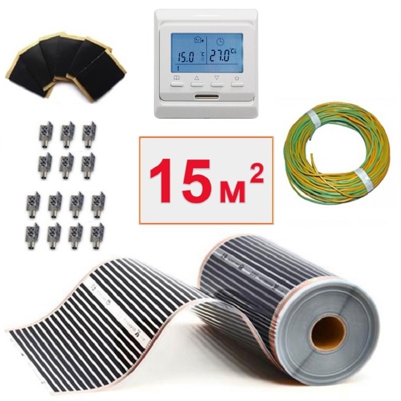 Плёночный тёплый пол 15м.кв. с программируемым терморегулятором. Инфракрасная плёнка 15 м2
