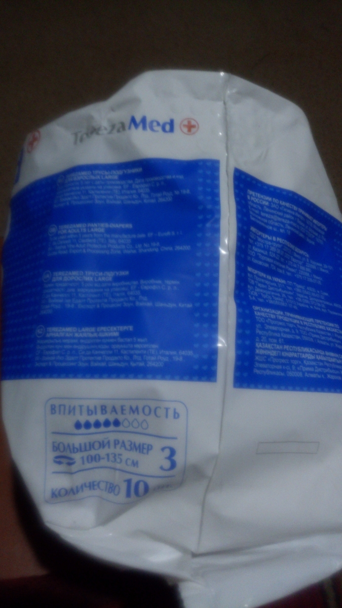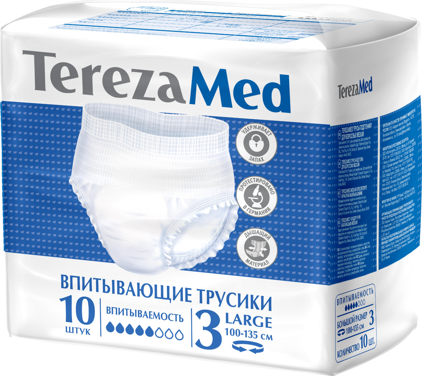Подгузники-трусики для взрослых впитывающие TerezaMed Large №3, одноразовые, 10 шт