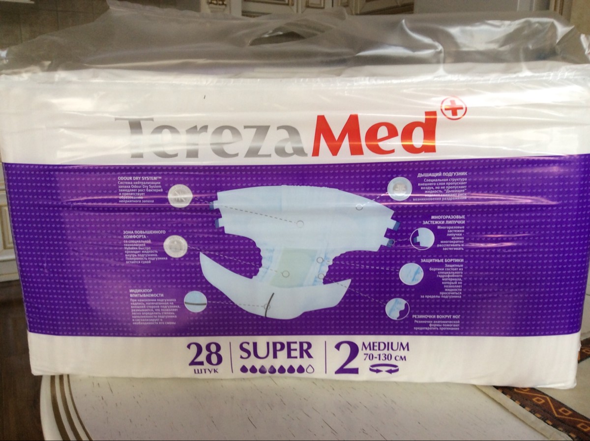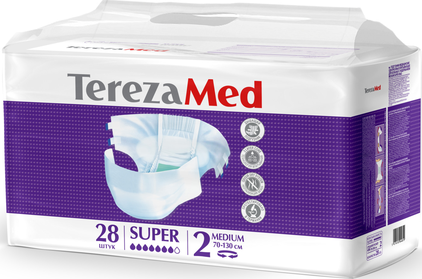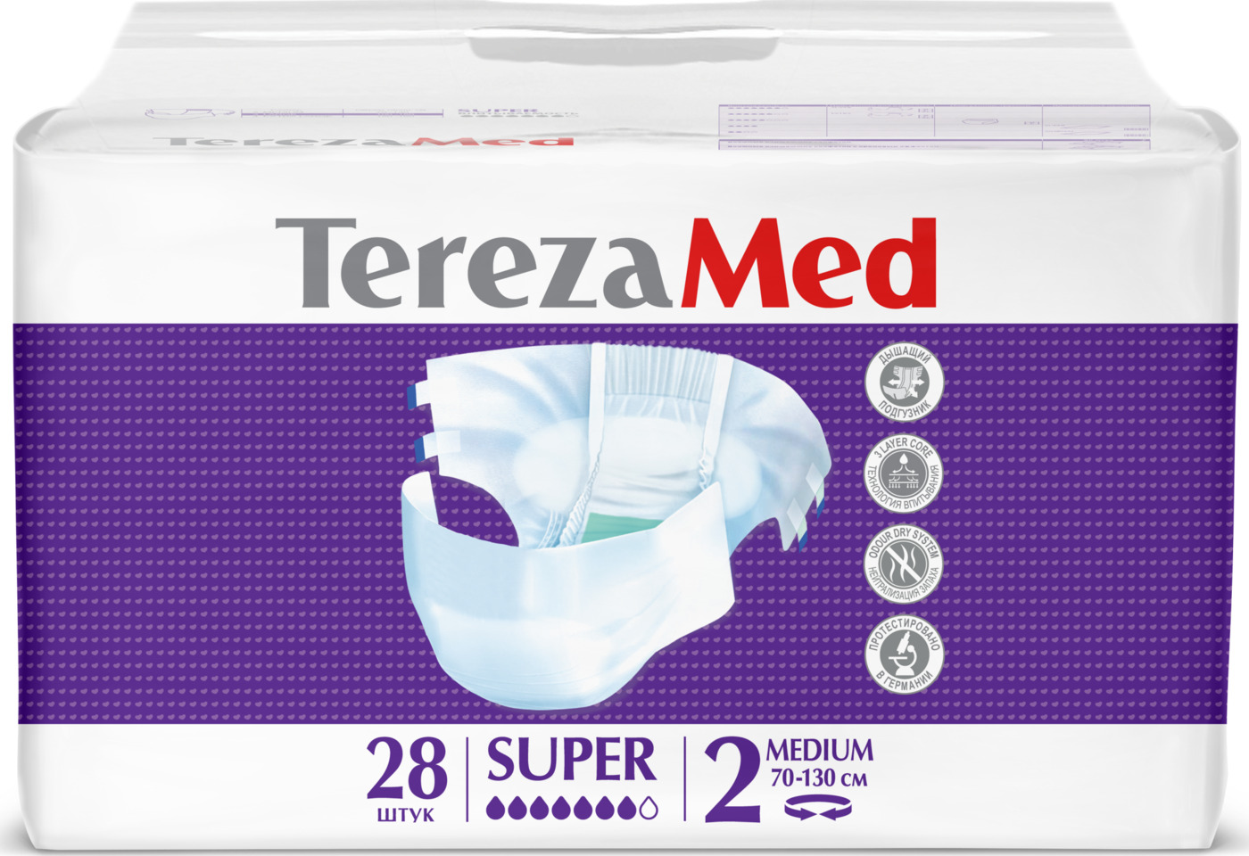 Подгузники для взрослых впитывающие на липучках TerezaMed Super Medium №2, одноразовые, 28 шт
