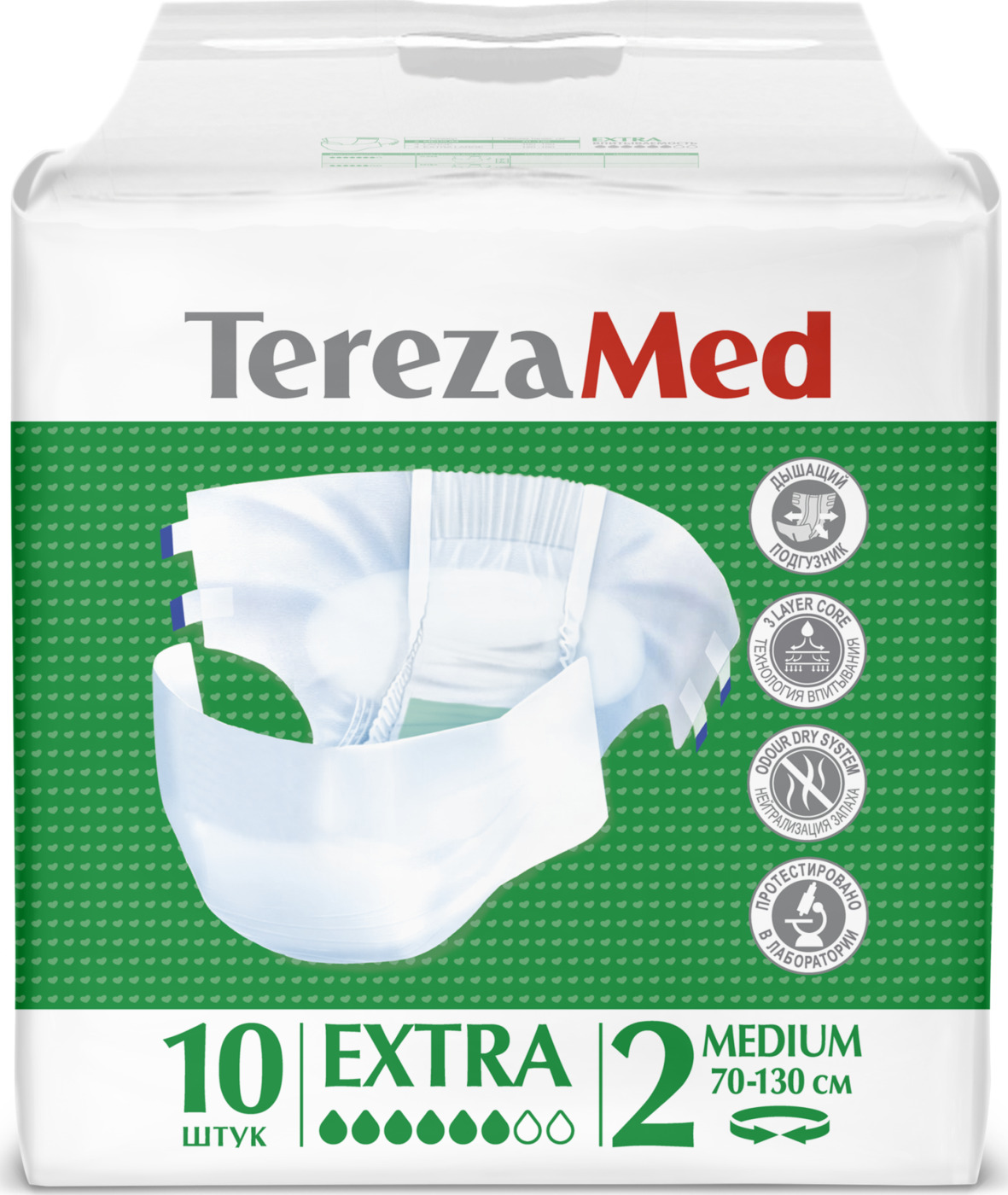 Подгузники для взрослых впитывающие на липучках TerezaMed Extra Medium №2, одноразовые, 10 шт