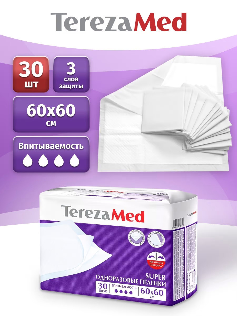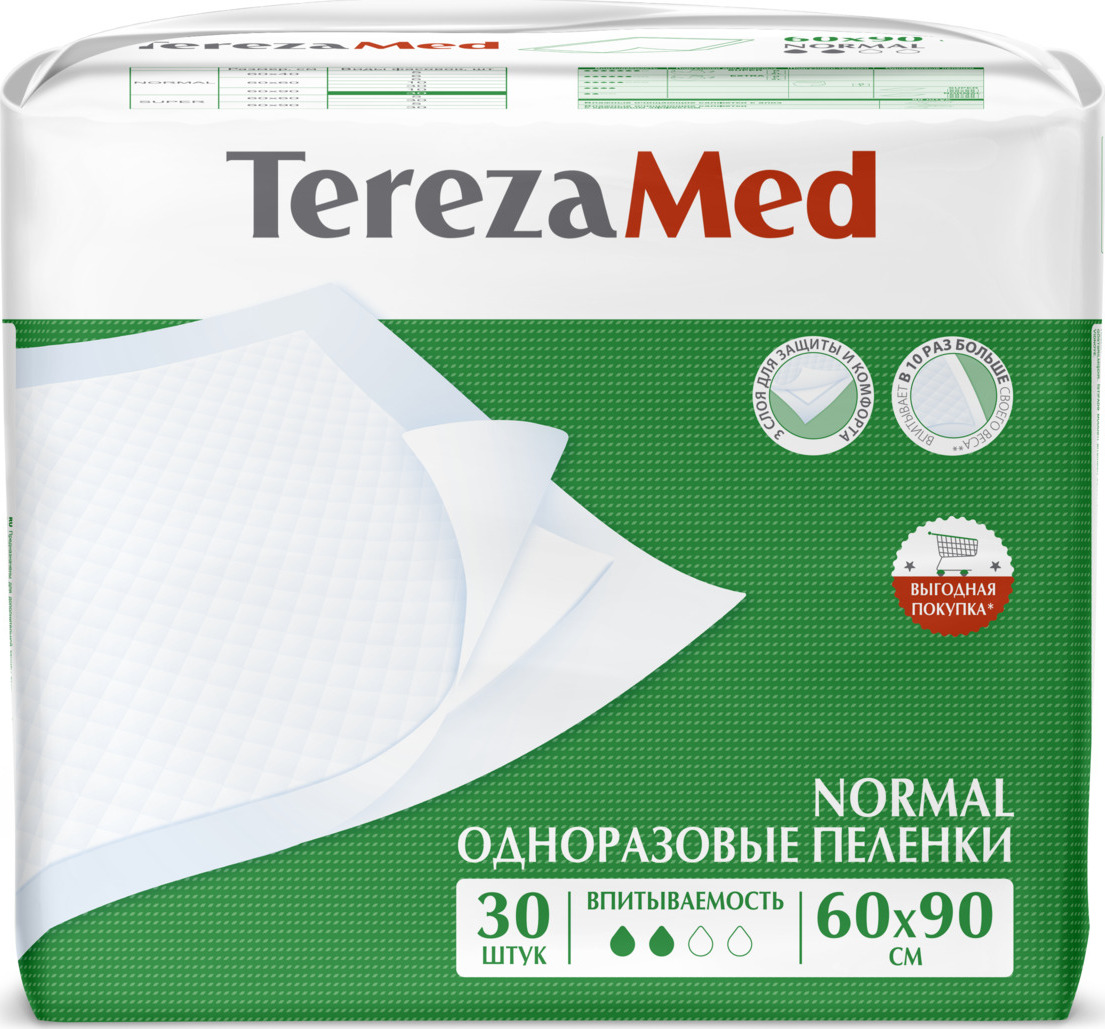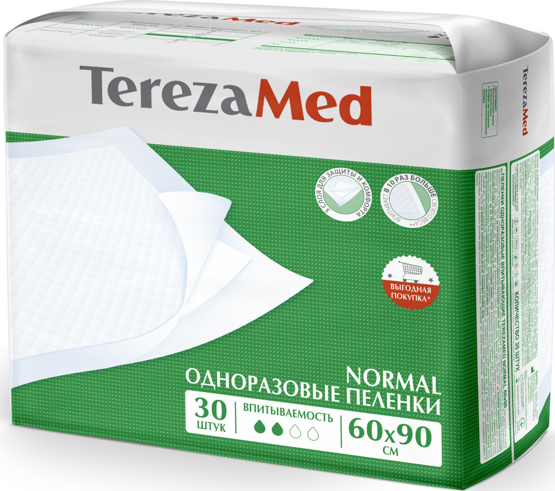 Пеленка медицинская TerezaMed одноразовые впитывающие Normal, 60 х 90 см, 30 шт