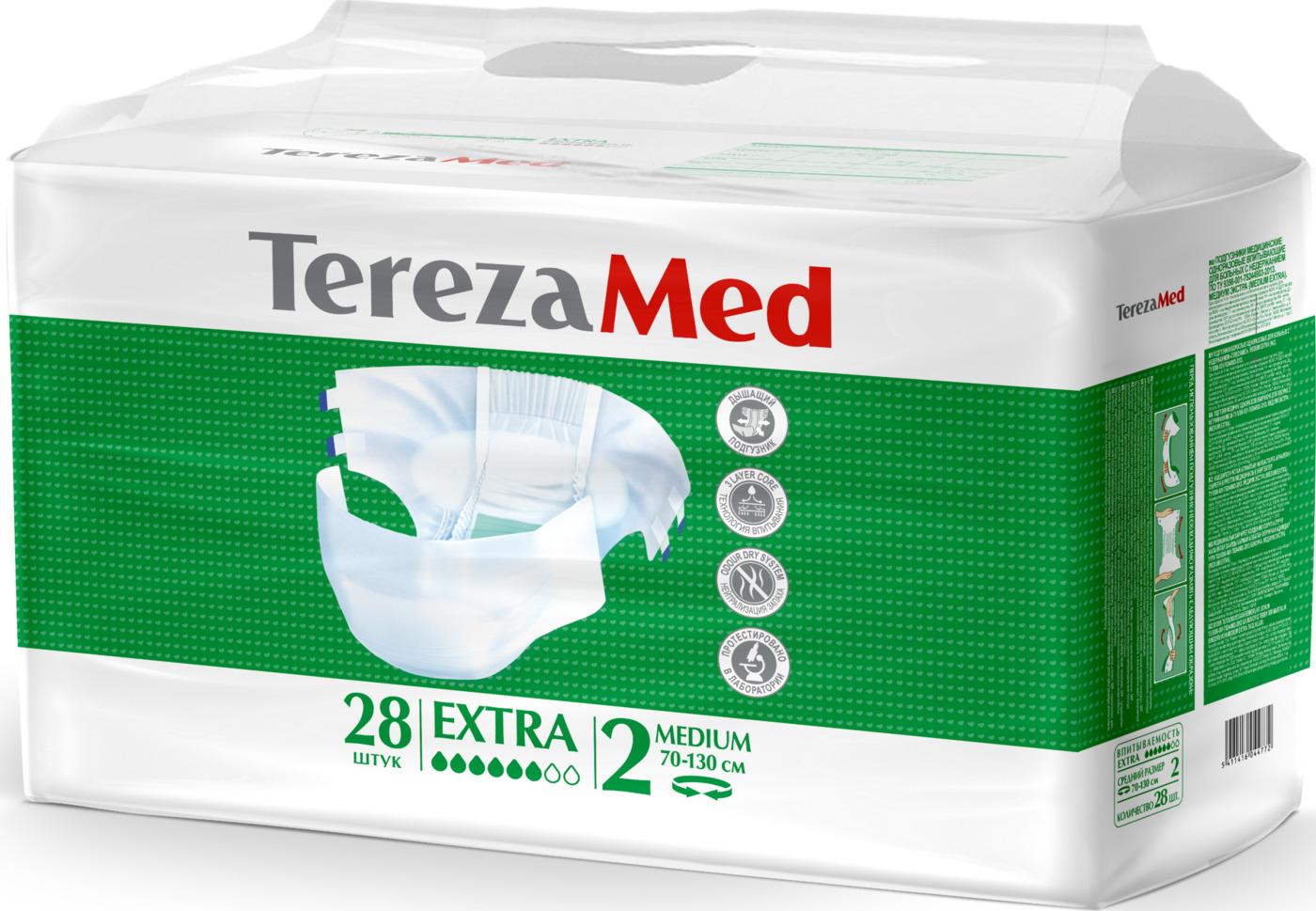 Подгузники для взрослых впитывающие на липучках TerezaMed Extra Medium №2, одноразовые, 28 шт