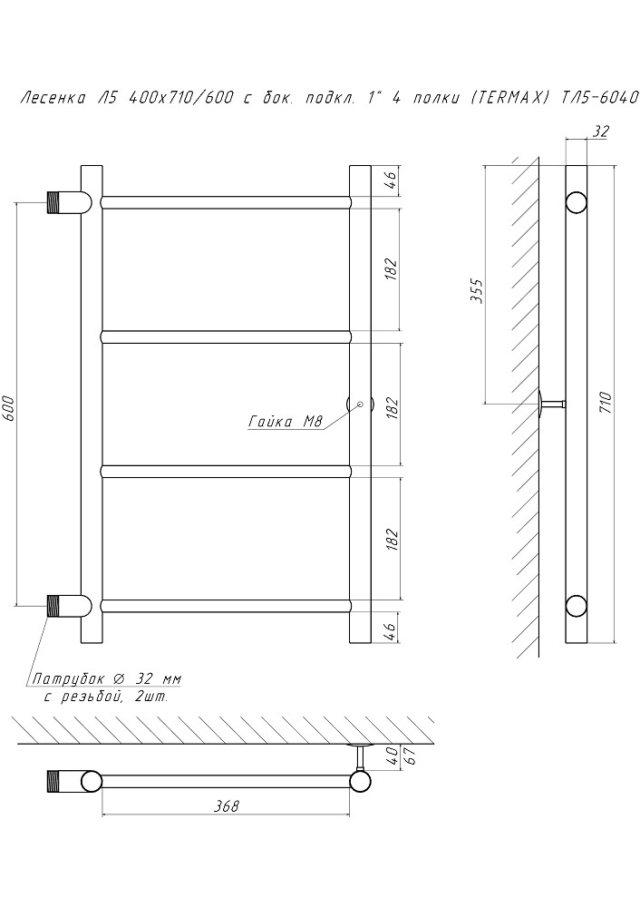 Полотенцесушитель Termax 500мм 700мм форма Лесенка