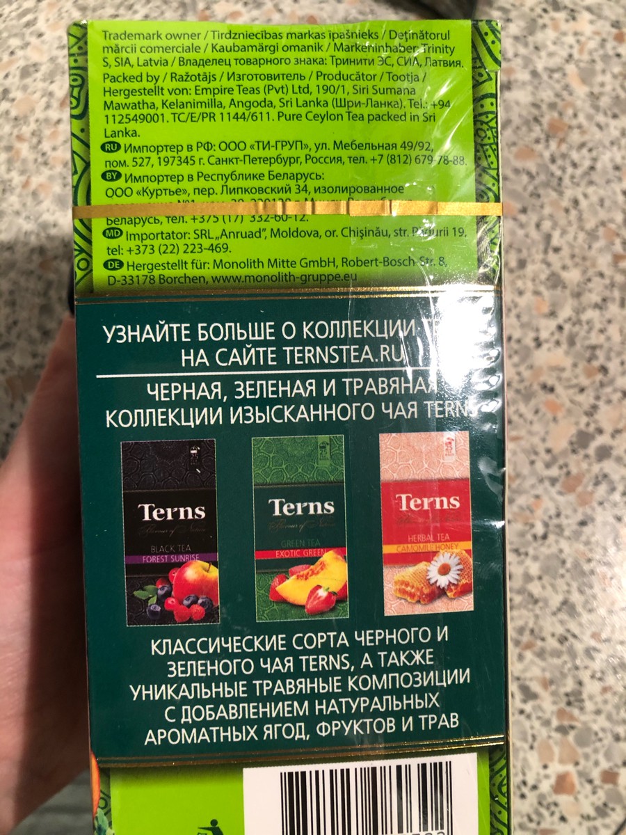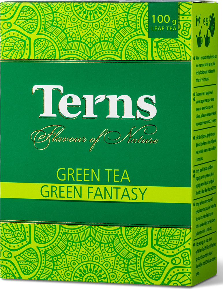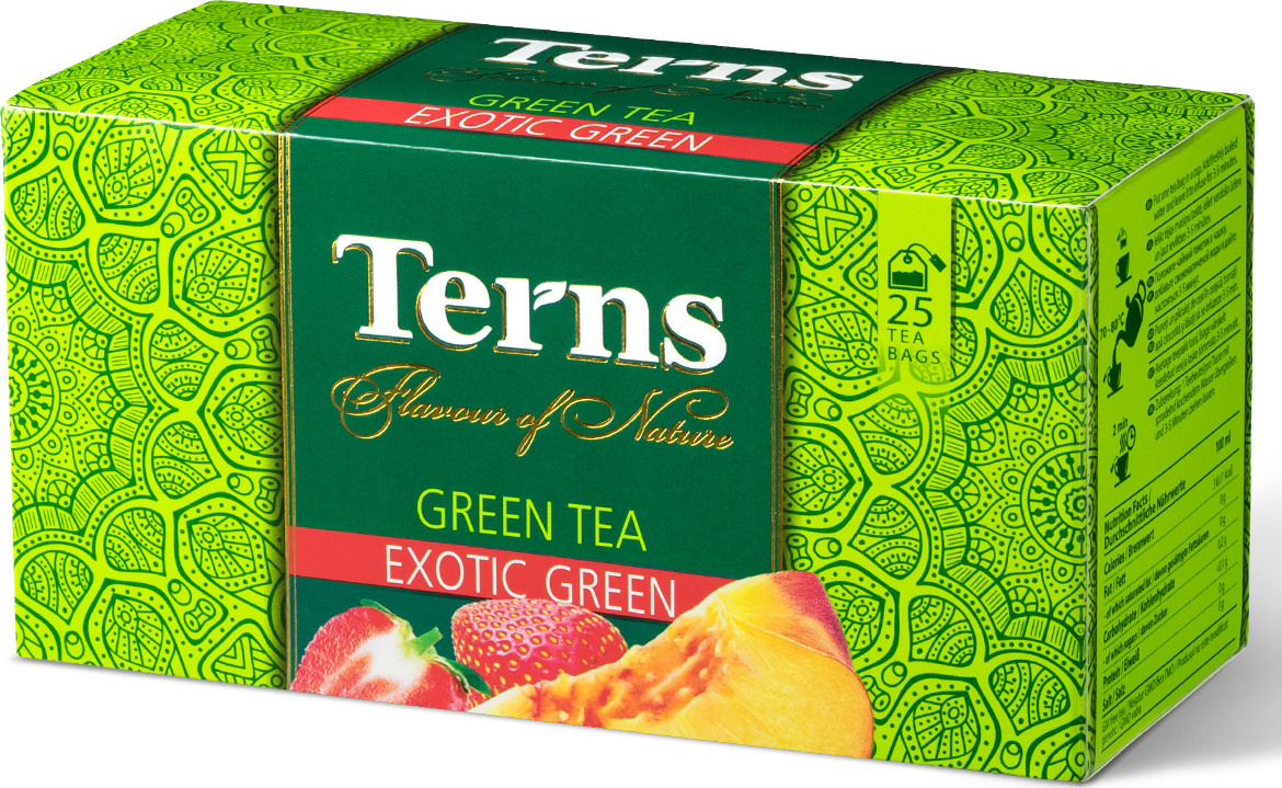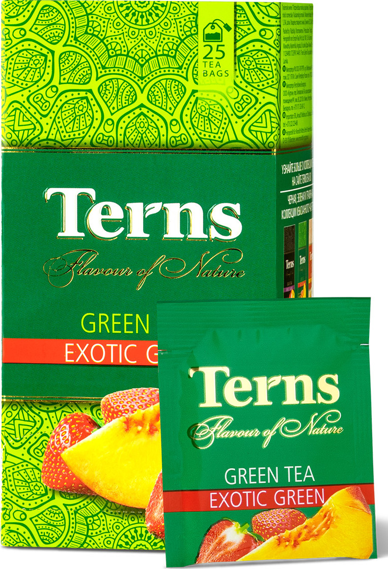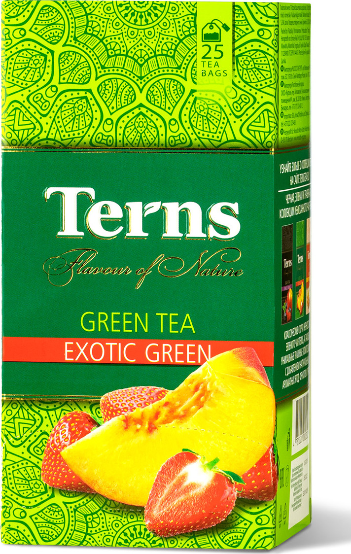 "Terns" Exotic Green чай зеленый со вкусом персика и клубники пакетированный в саше, 25 пакетиков