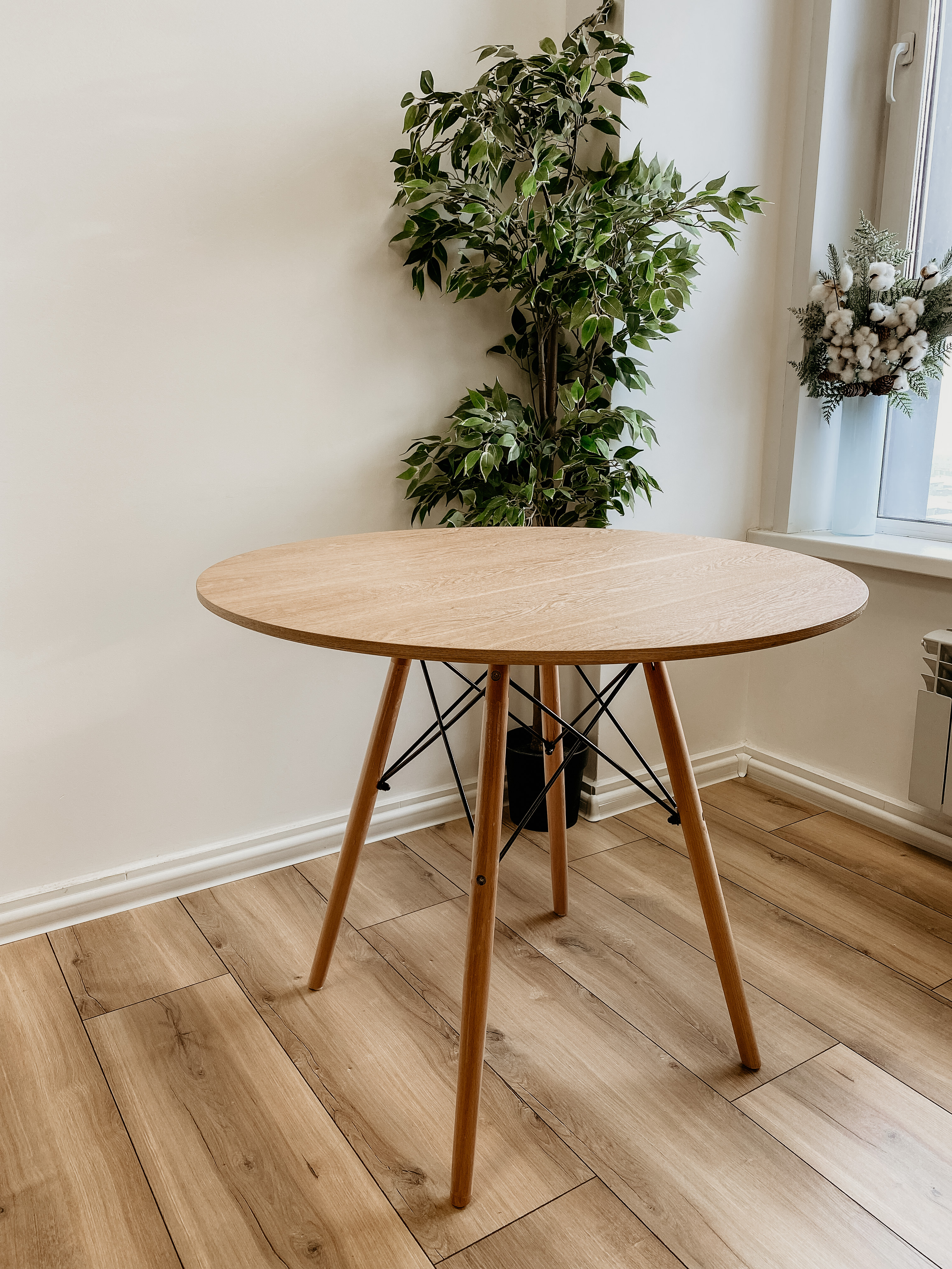 Стол обеденный Нераскладной нераскладной круглый кухонный Eames DSW, цвет под дерево, 90x90x74, 90х90х74 см