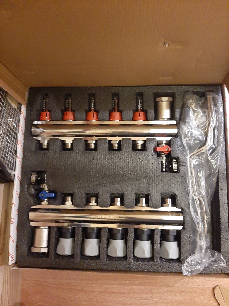 КОЛЛЕКТОРНЫЙ БЛОК ИЗ ЛАТУНИ С РАСХОДОМЕРАМИ 1"X3/4" 6 ВЫХОДА "Thermofix"