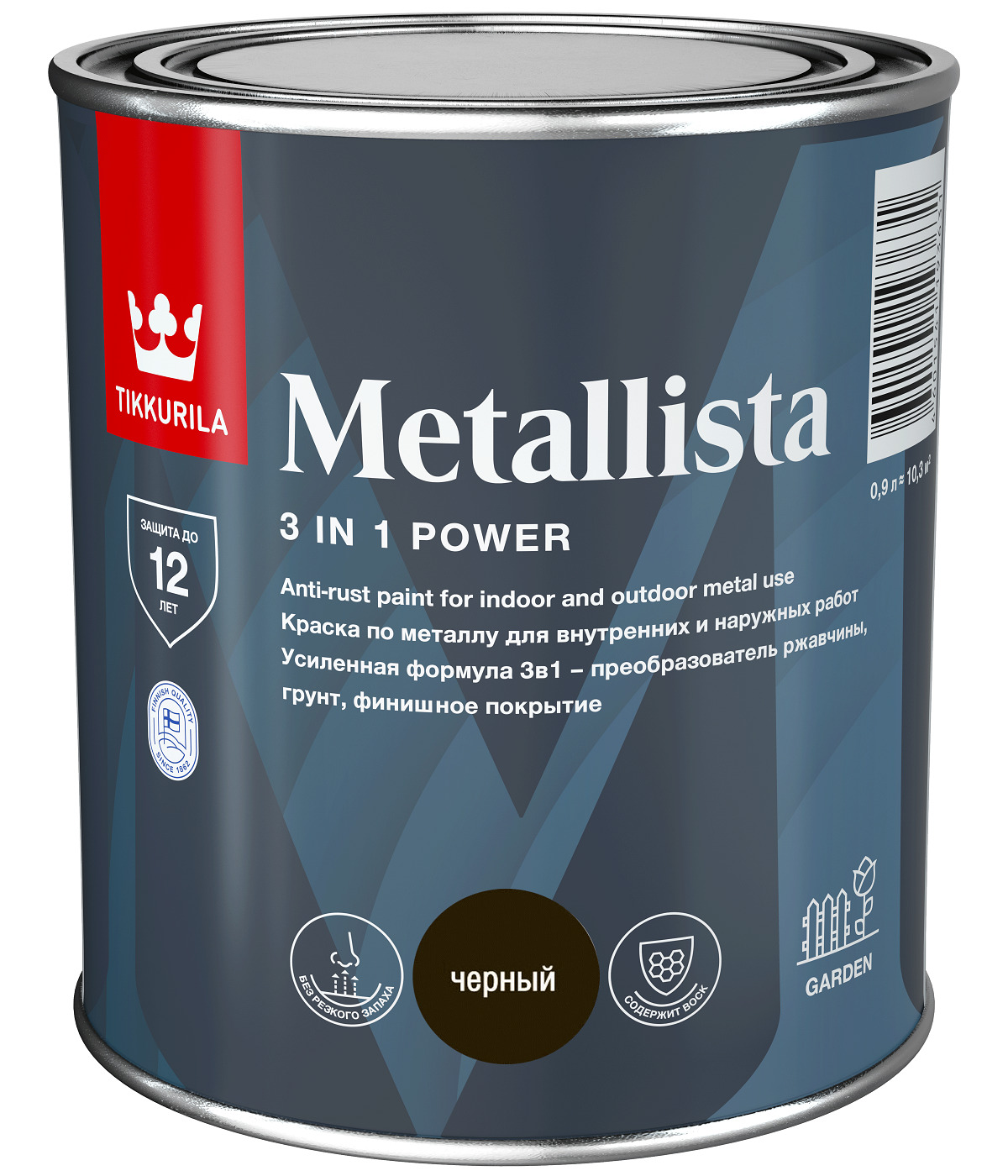 Краска Tikkurila METALLISTA гл 0,9л, Глянцевое покрытие, 0.9 л, 0.88 кг, черный