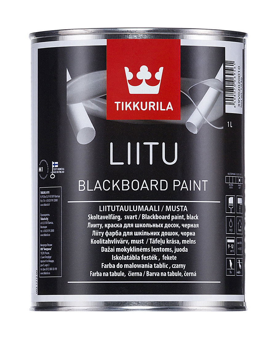 Краска Tikkurila Liitu Грифельная, Водная, Матовое покрытие, 1 л, черный