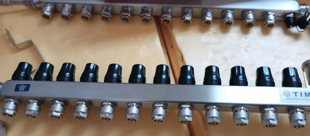 Коллекторная группа Tim (KD010) 1" ВР, 10 отводов 3/4", расходомер