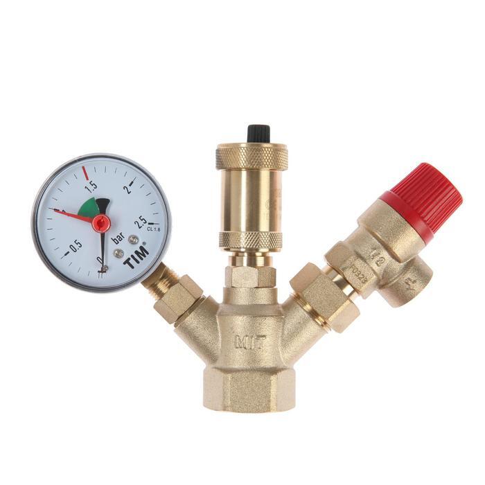 Группа безопасности TIM МИНИ JH1024-1.5, для котлов отопления, 1", 1.5 бар