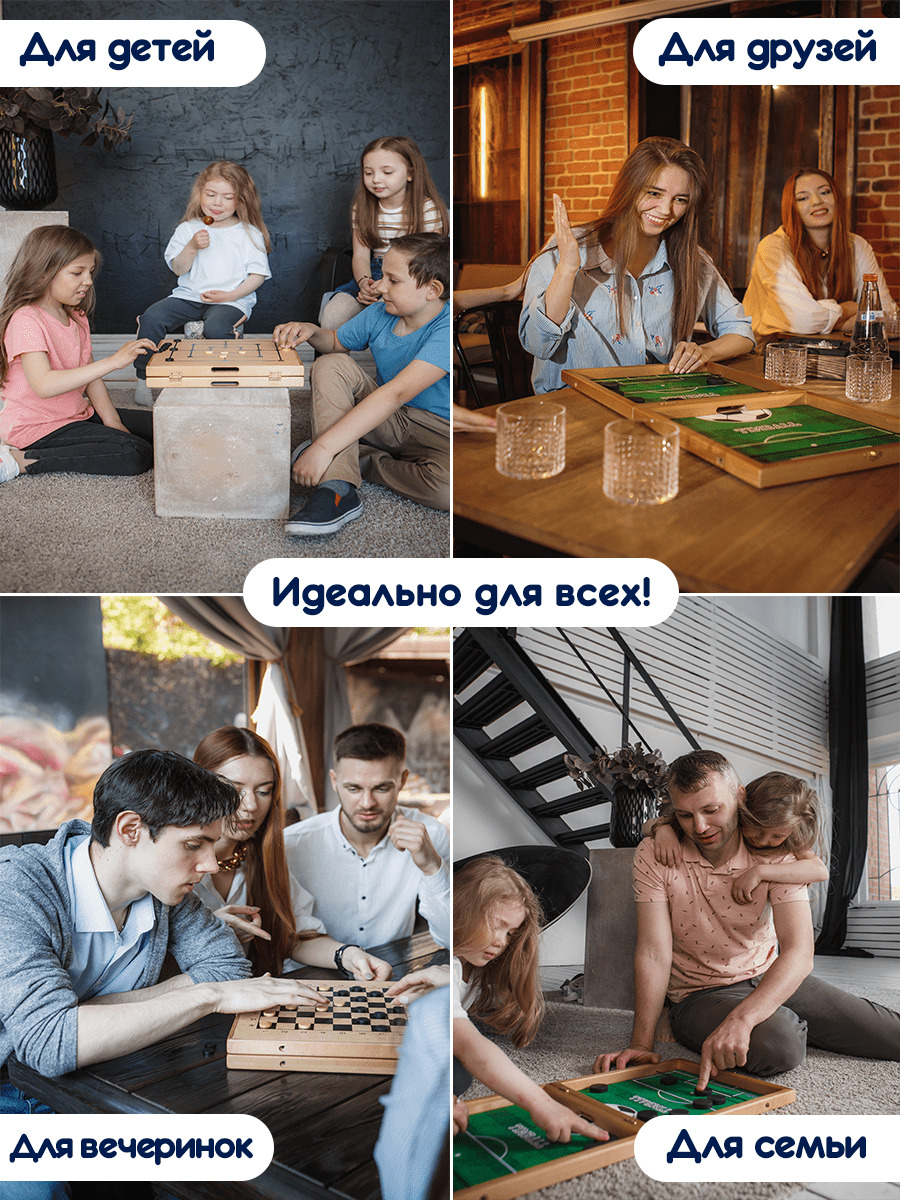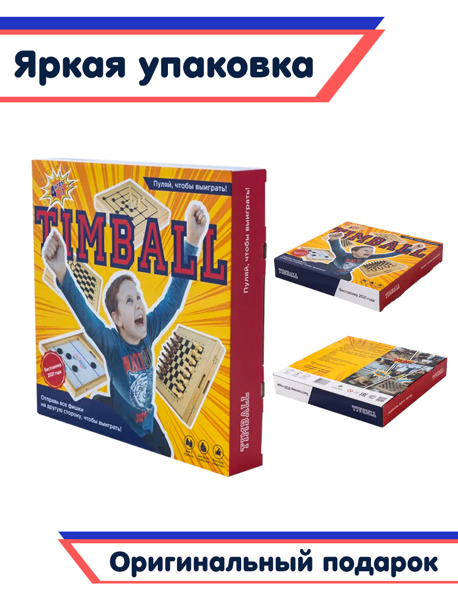 Настольная игра Timball 4 в 1 / Аэрохоккей / Настольный хоккей / Игры для детей / Вышибайка / Шахматы / Шашки / Fast Sling Puck / Вышибашки