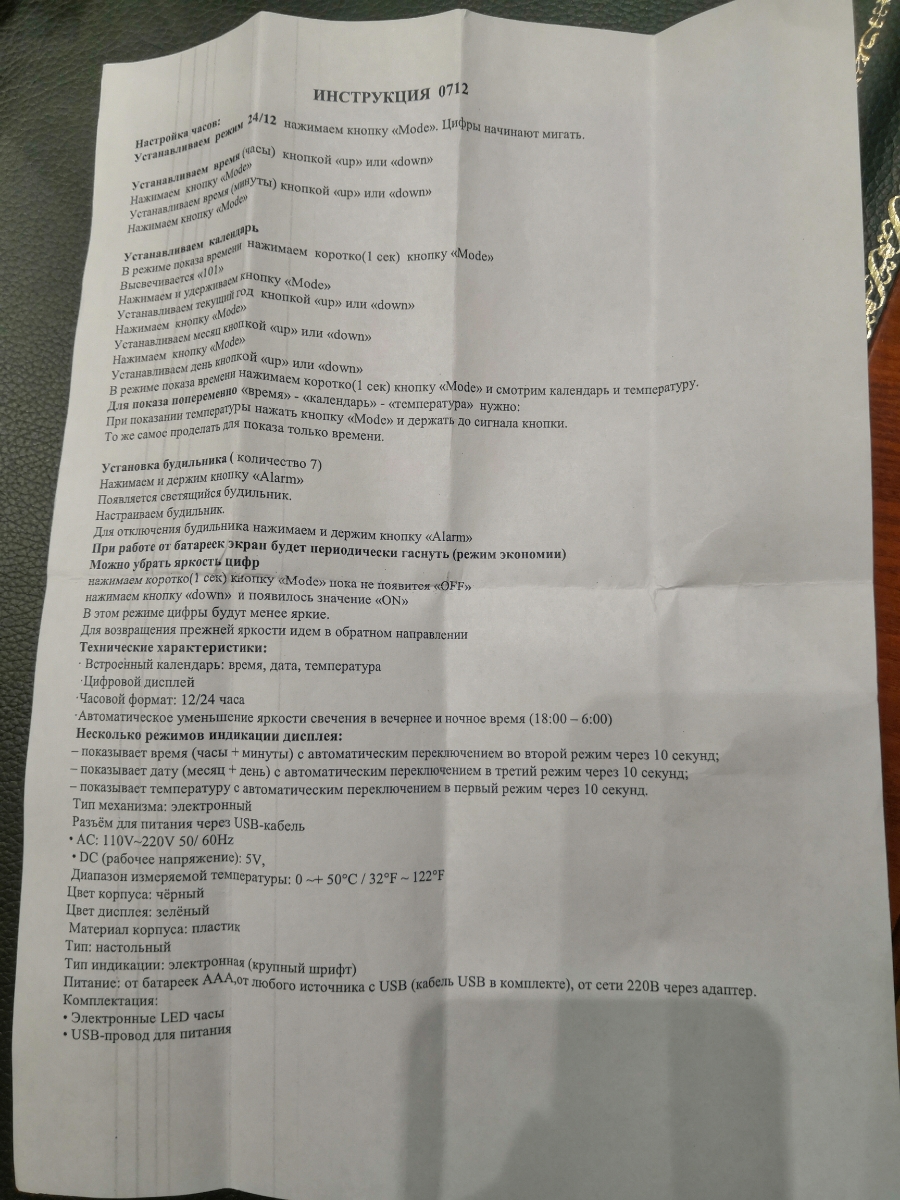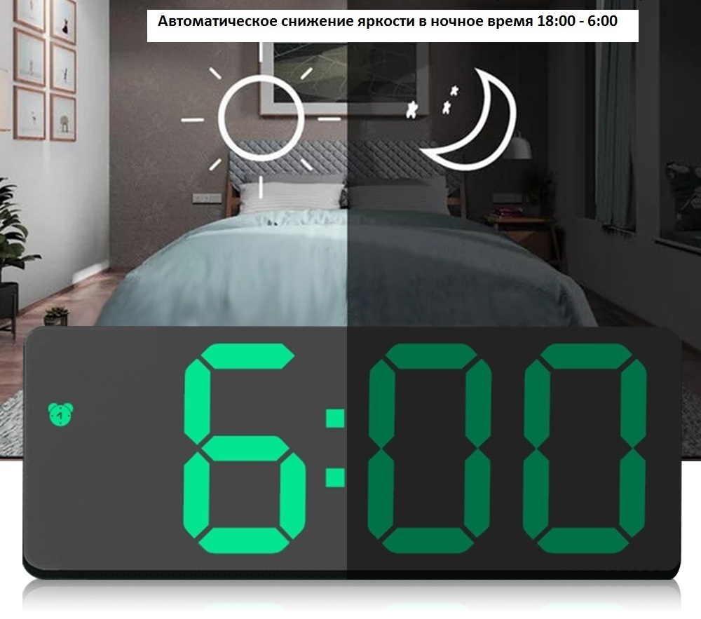 Часы будильник с автоматической подсветкой, термометром и календарем