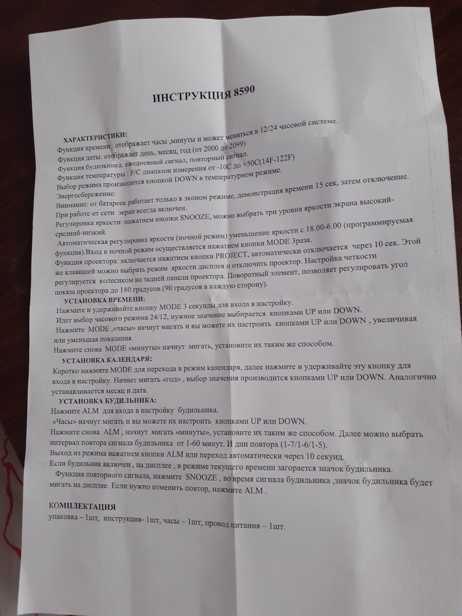 Настольные электронные часы будильник с проекцией времени, температурой , календарем