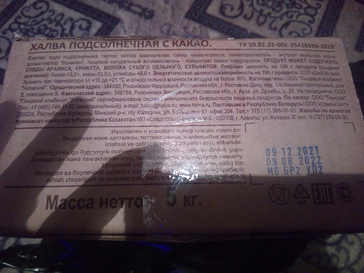 Халва подсолнечная "Тимоша" (с какао, 5 кг)