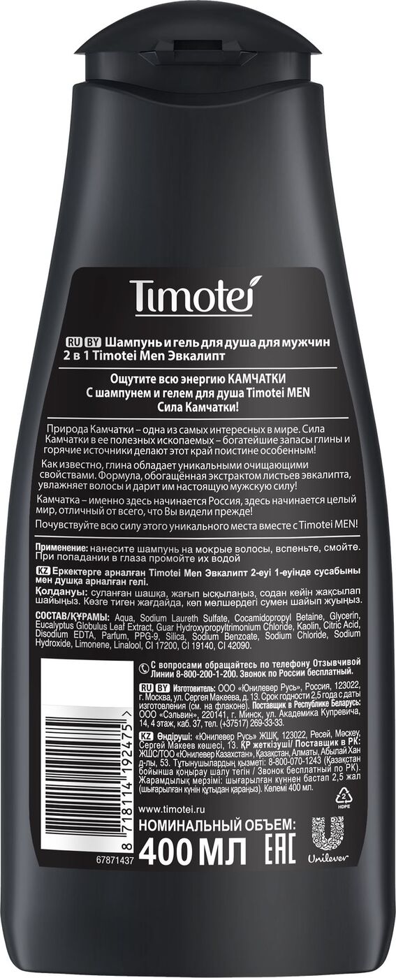 Гель для душа и шампунь Timotei Men Заряд энергии