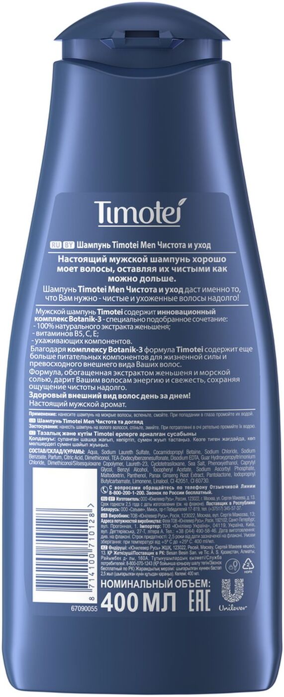 Timotei MEN Шампунь Дух свободы Чистота и уход, 400 мл