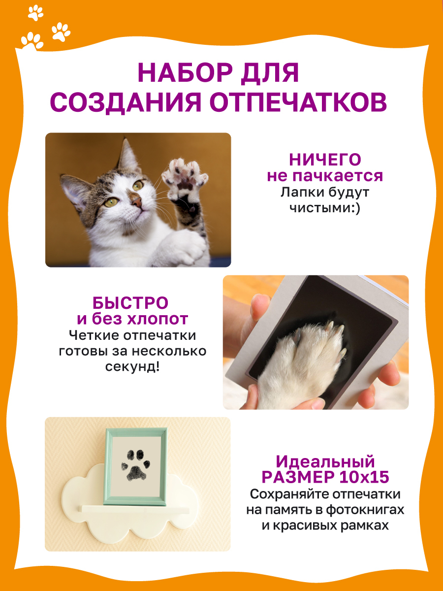 Набор для создания отпечатков лап животных, собак и кошек Tiny Gift