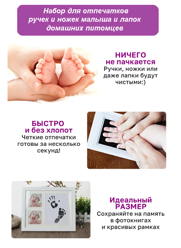 Слепки ручек и ножек малыша / Набор для создания слепков / Отпечаток ручки и ножки / подарок