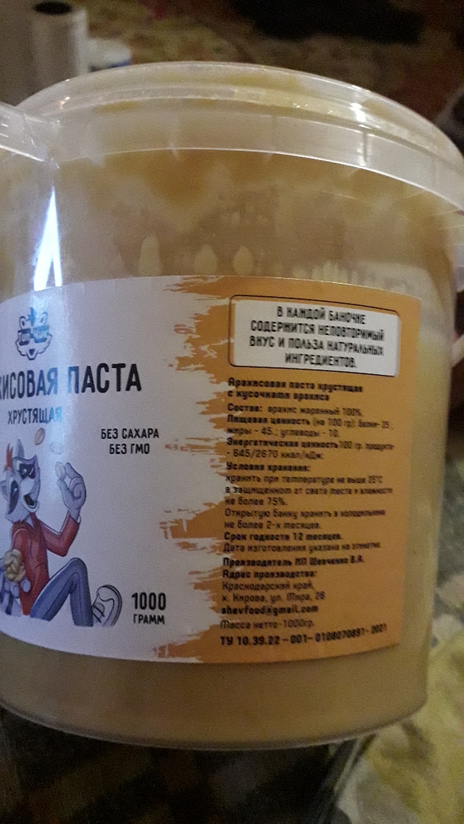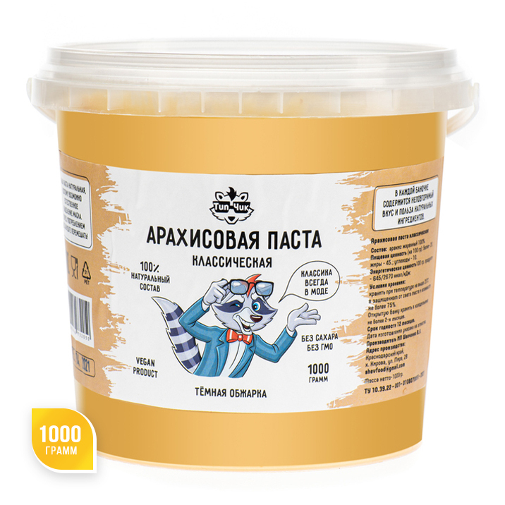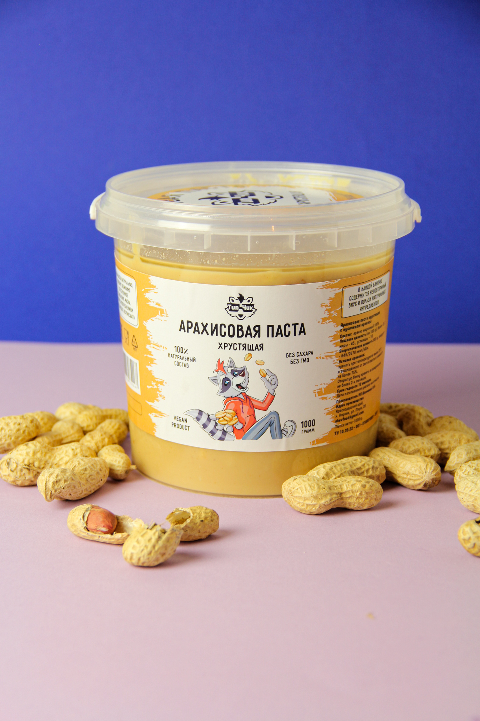 Арахисовая паста ТипЧик хрустящая, без сахара, натуральная, без масел, бразильский арахис, 1000 г.