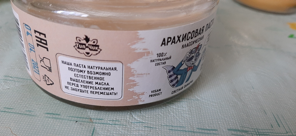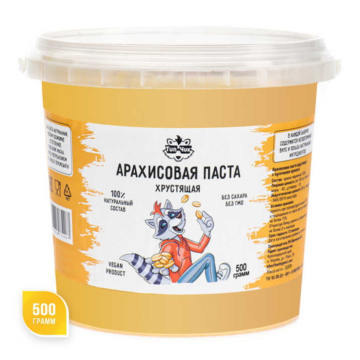 Арахисовая паста БЕЗ САХАРА "хрустящая" ТипЧик, 100% натуральная, 500 гр