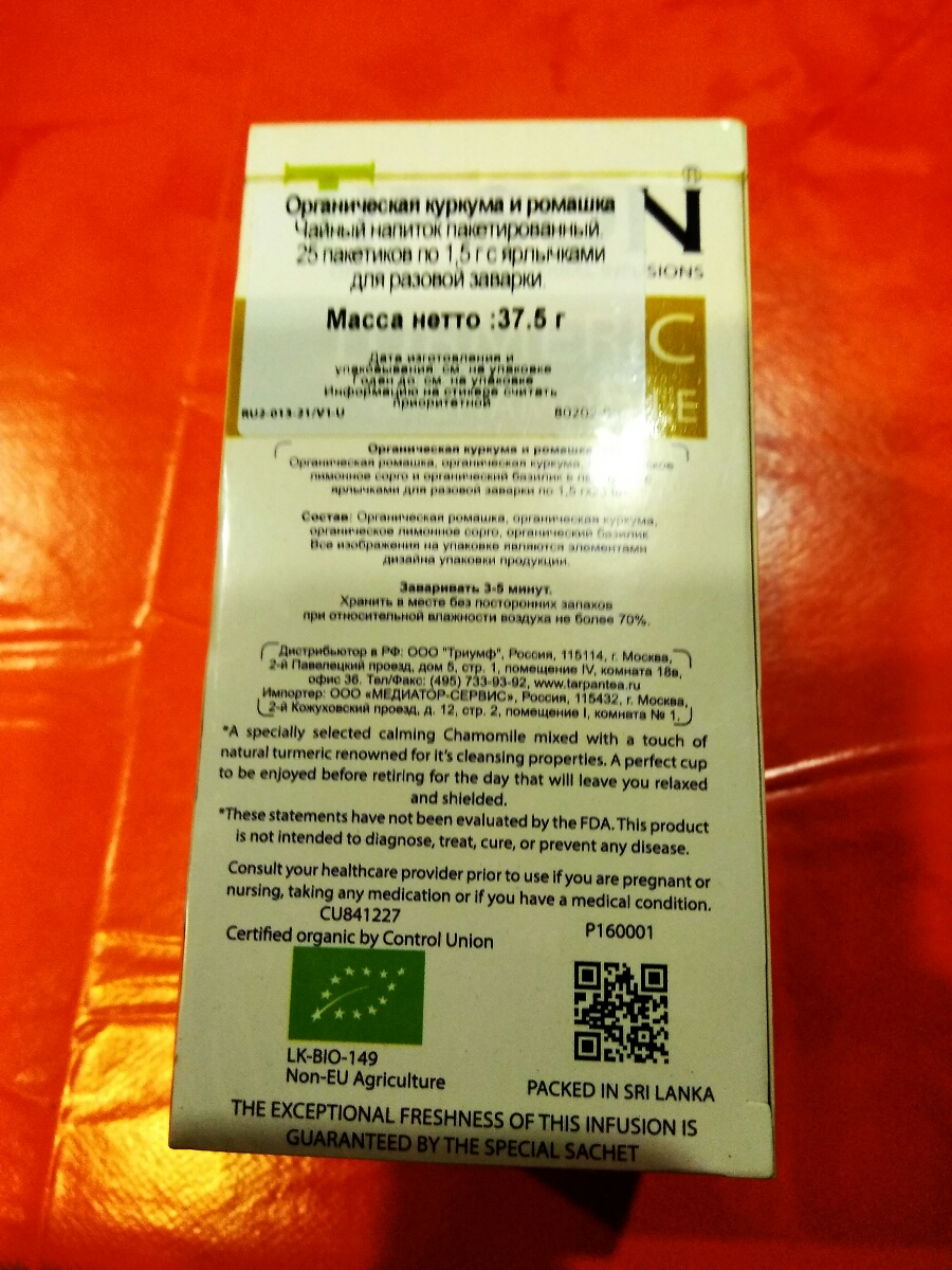 Чай Tipson Health Матча (Matcha) Куркума и маракуйя, 25 пакетиков