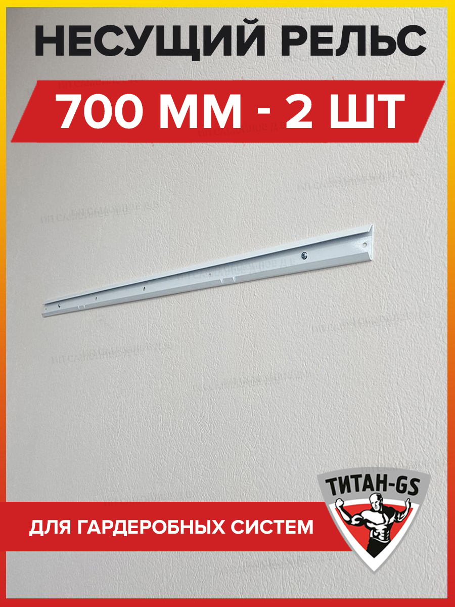 Несущий рельс 700 мм для гардеробной системы хранения Титан-GS - 2 шт (направляющая на стену)