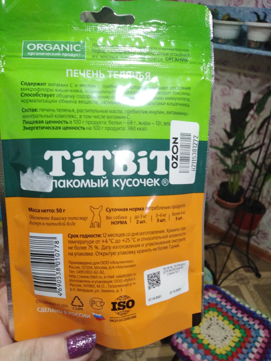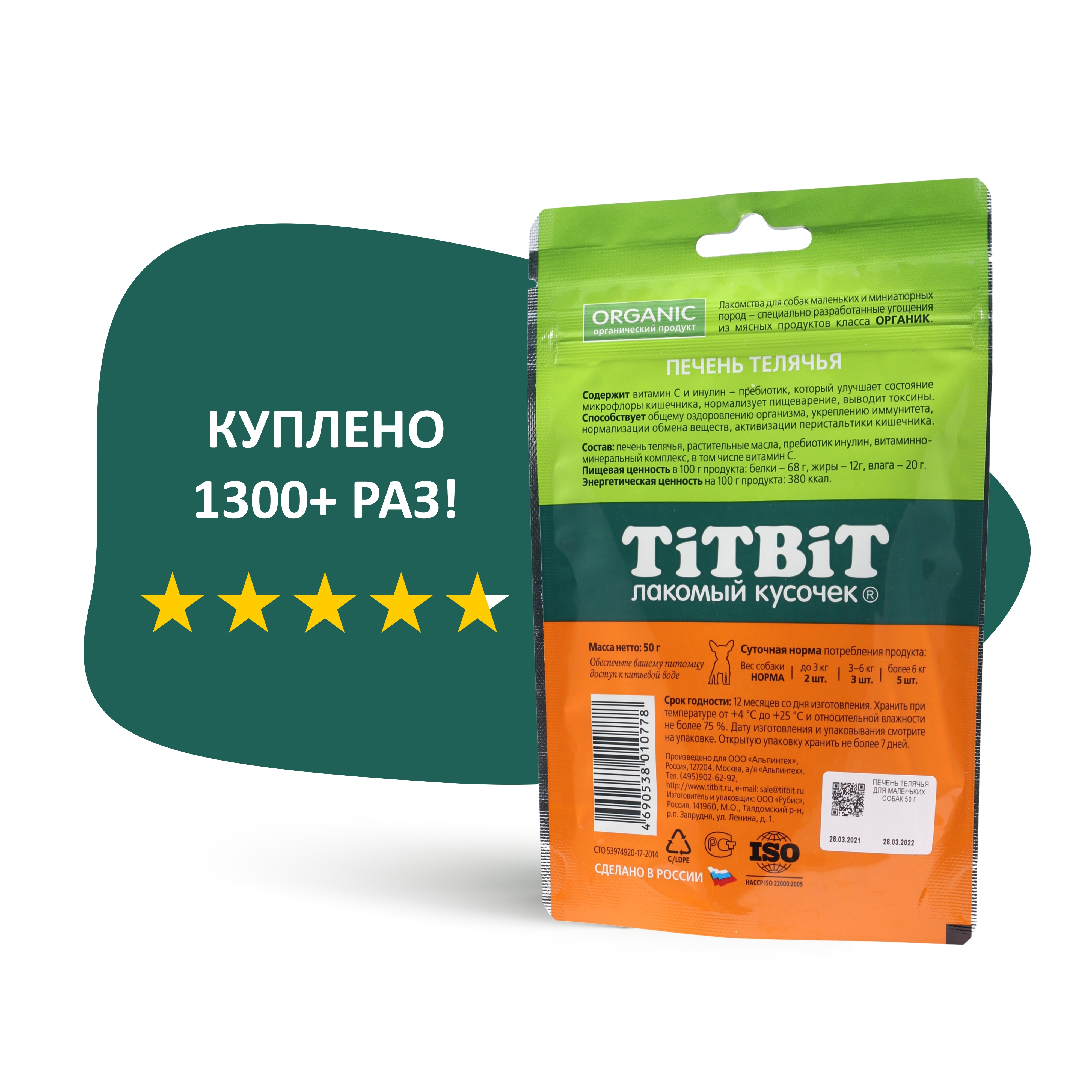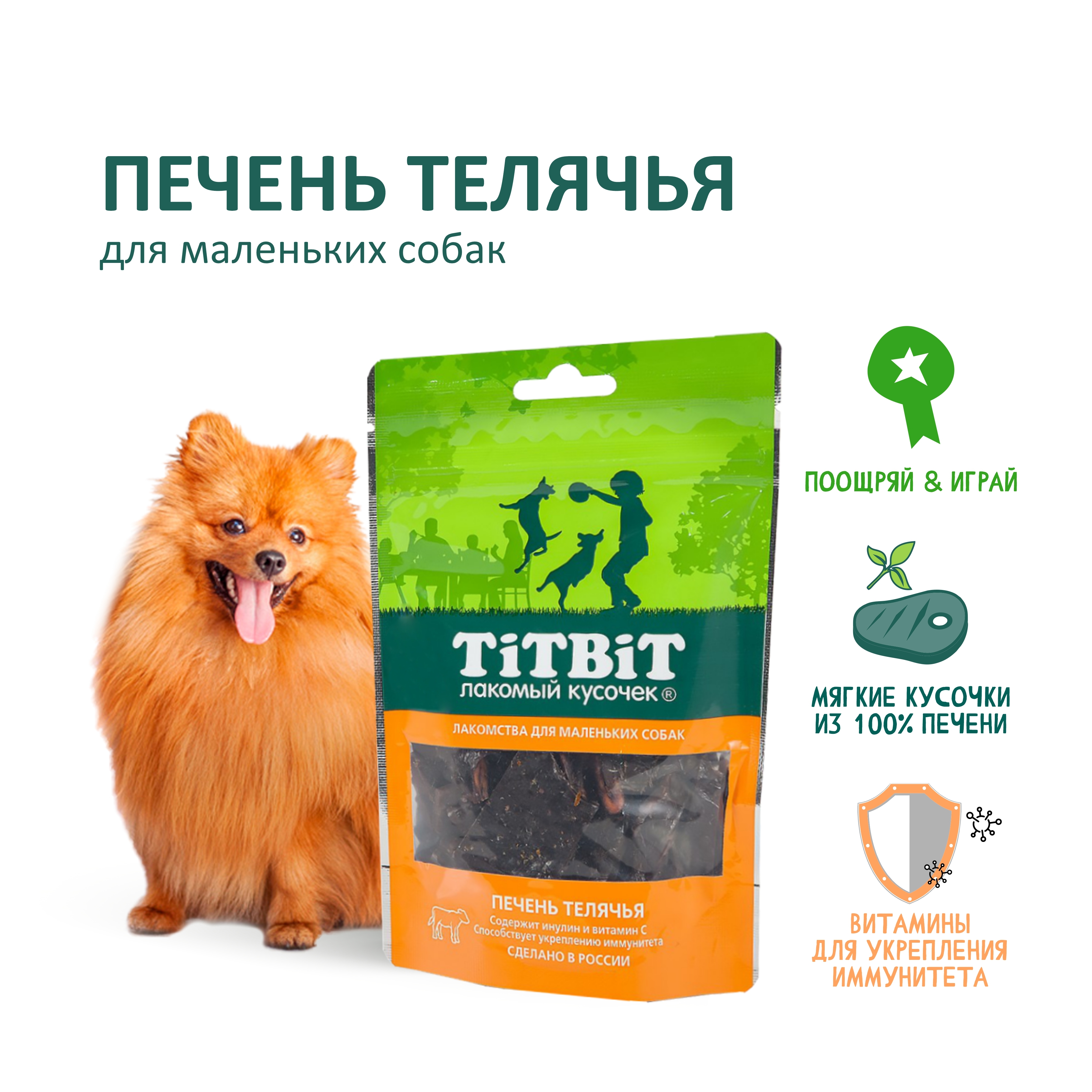 Лакомство для собак мелких пород TiTBiT Печень телячья вяленая 50 г