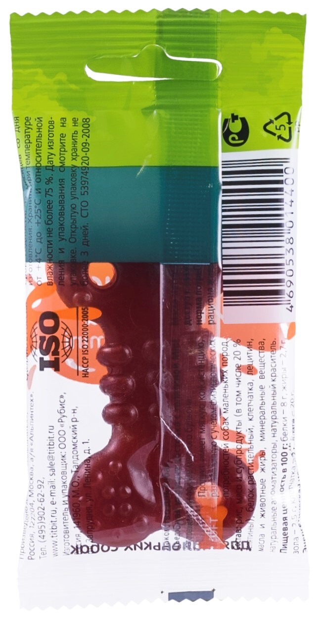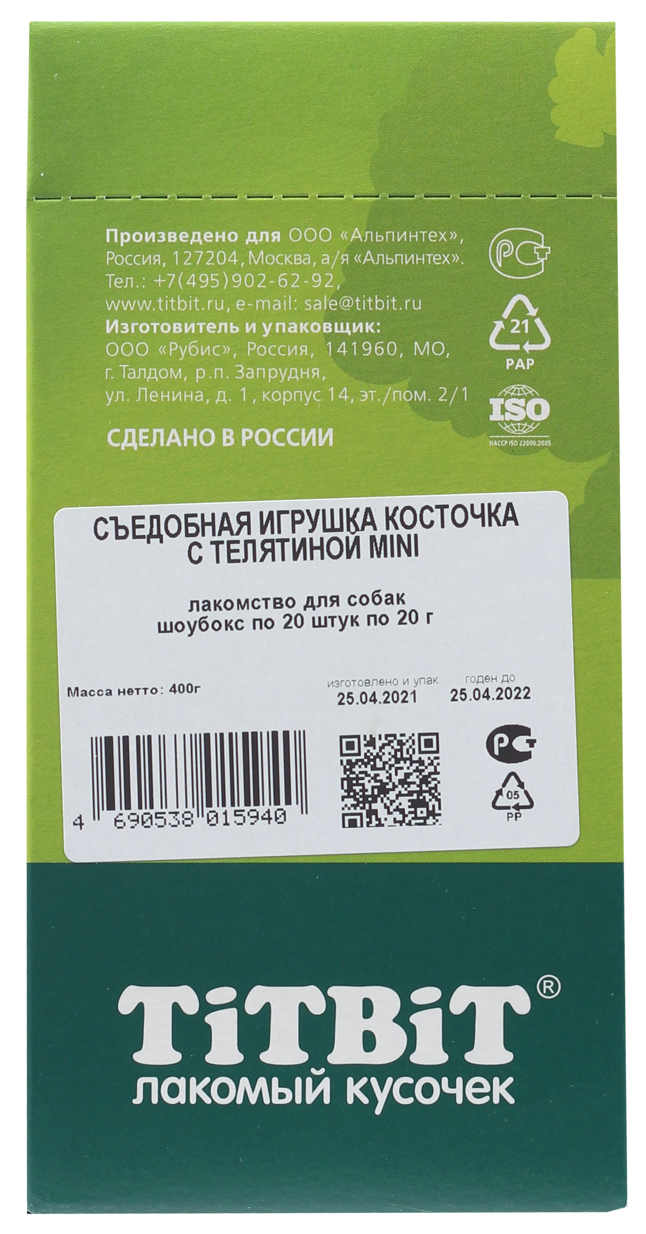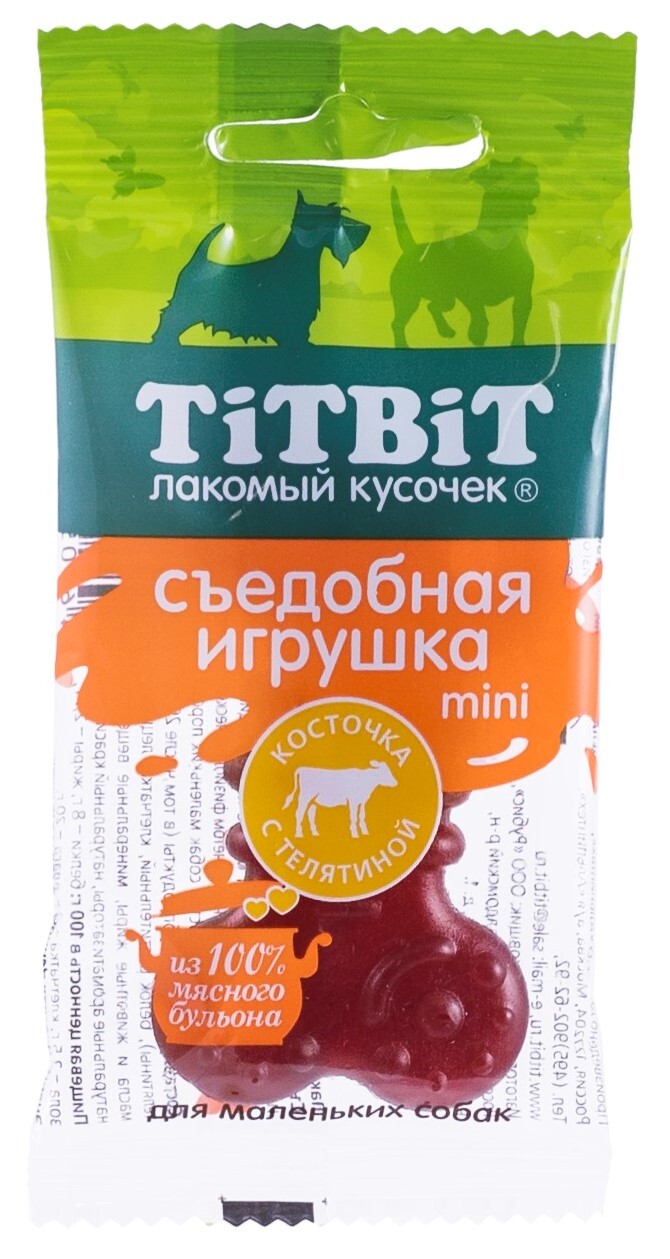 Лакомство для собак TiTBiT Съедобная игрушка косточка с телятиной Mini 20 шт