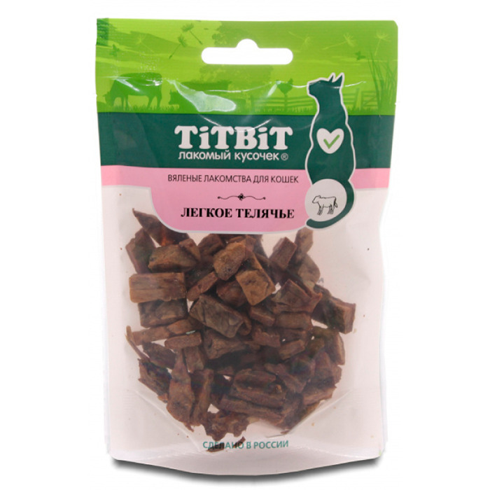 TITBIT Вяленые лакомства для кошек лёгкое телячье, 20 гр 6шт