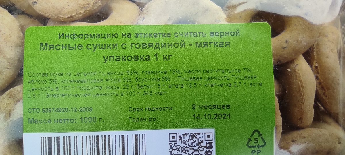 Лакомство для собак TiTBiT Печенье Мясные сушки с говядиной - мягкая упаковка 1 кг