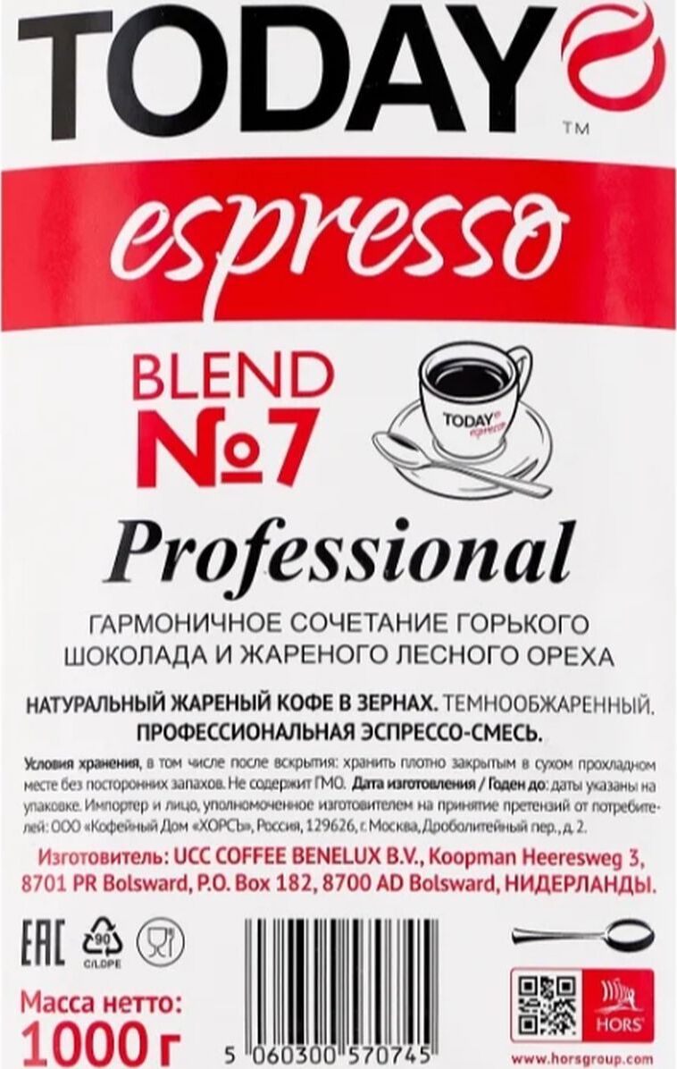 Today Espresso Blend 7 кофе в зернах, 1000 г