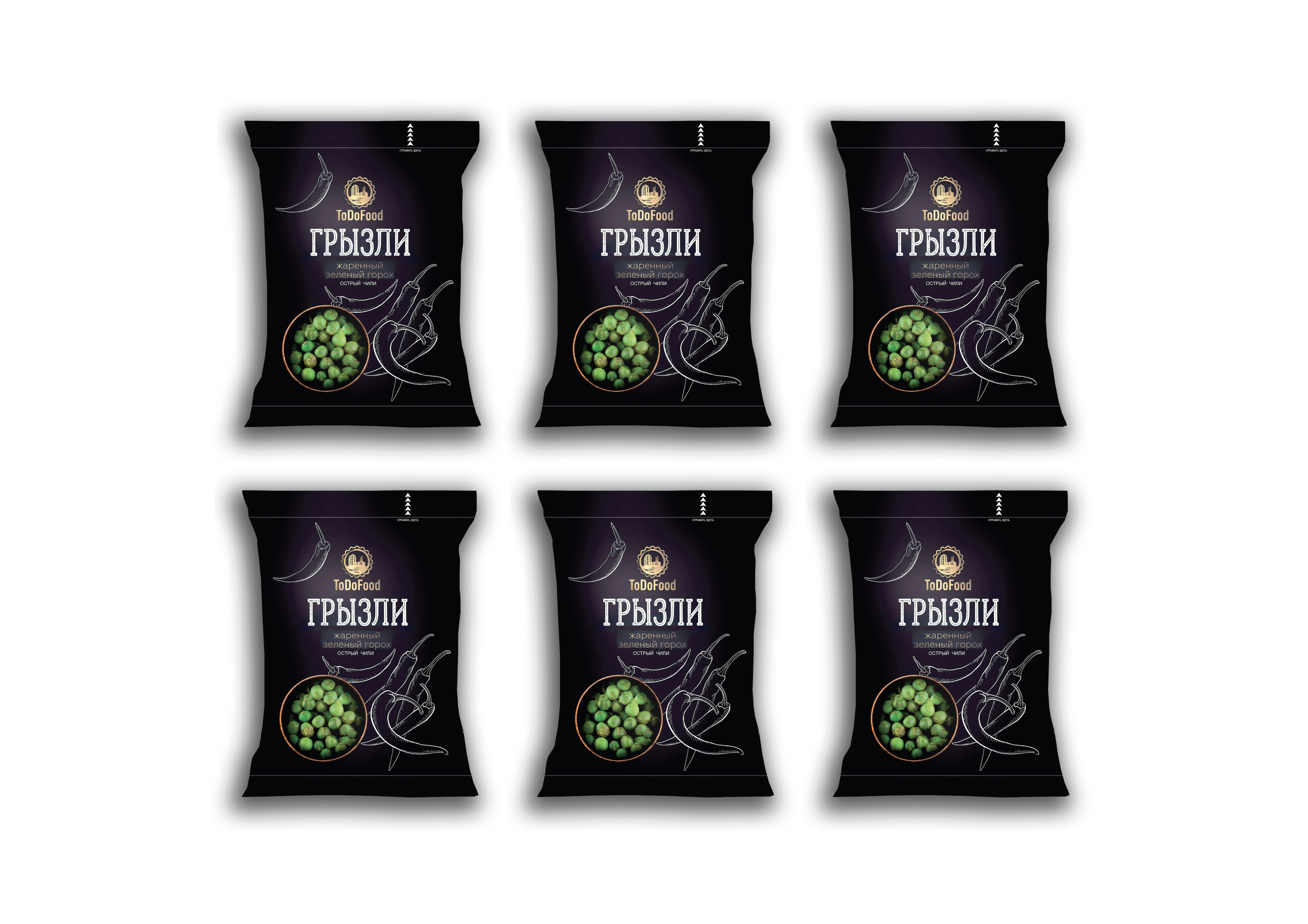 Зелёный горошек "ГРЫЗЛИ" со вкусом острого чили, 6 пачек по 35г/ СНЭК