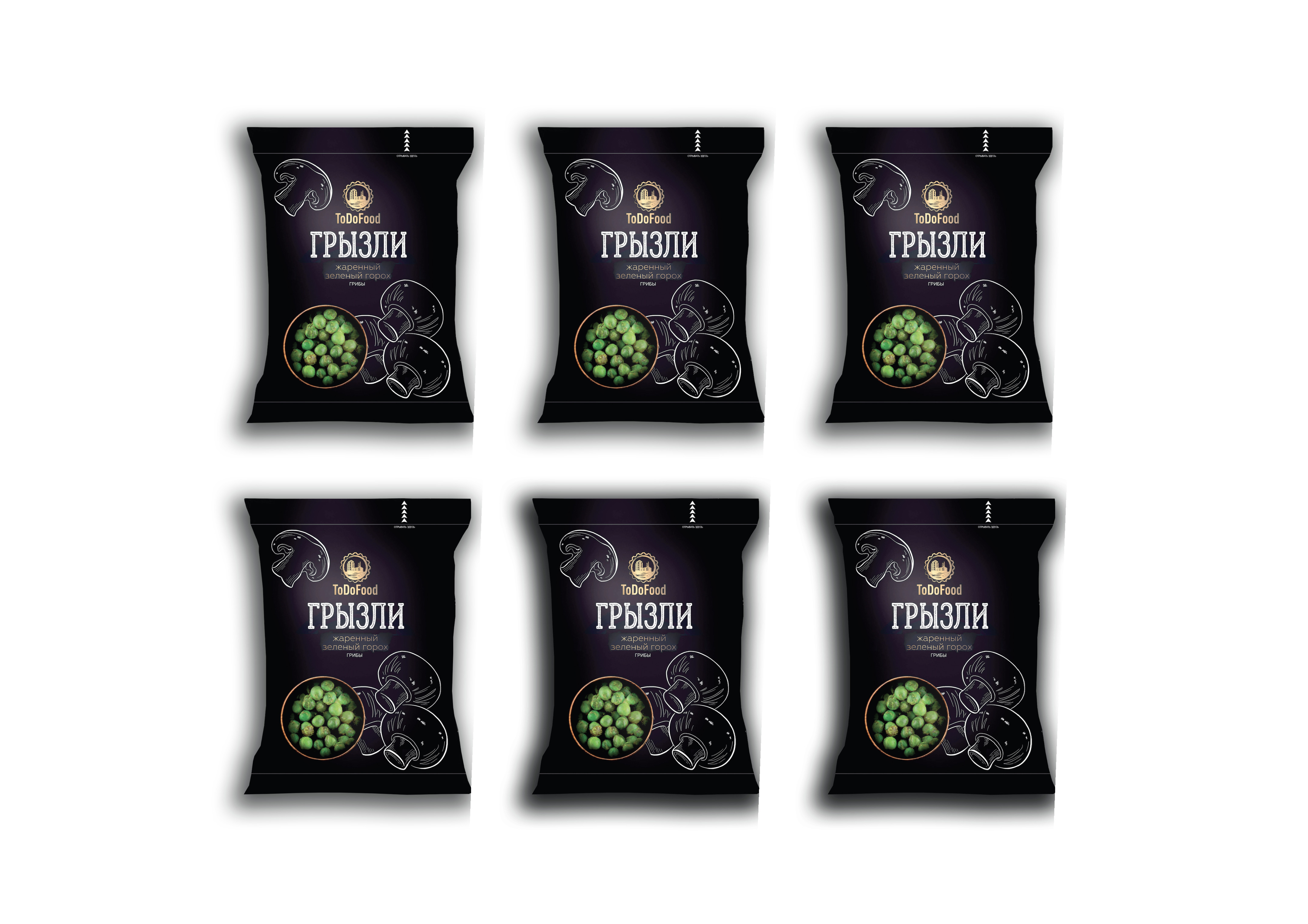 Зелёный горошек "ГРЫЗЛИ" со вкусом грибов, 6 пачек по 35г/ СНЭК