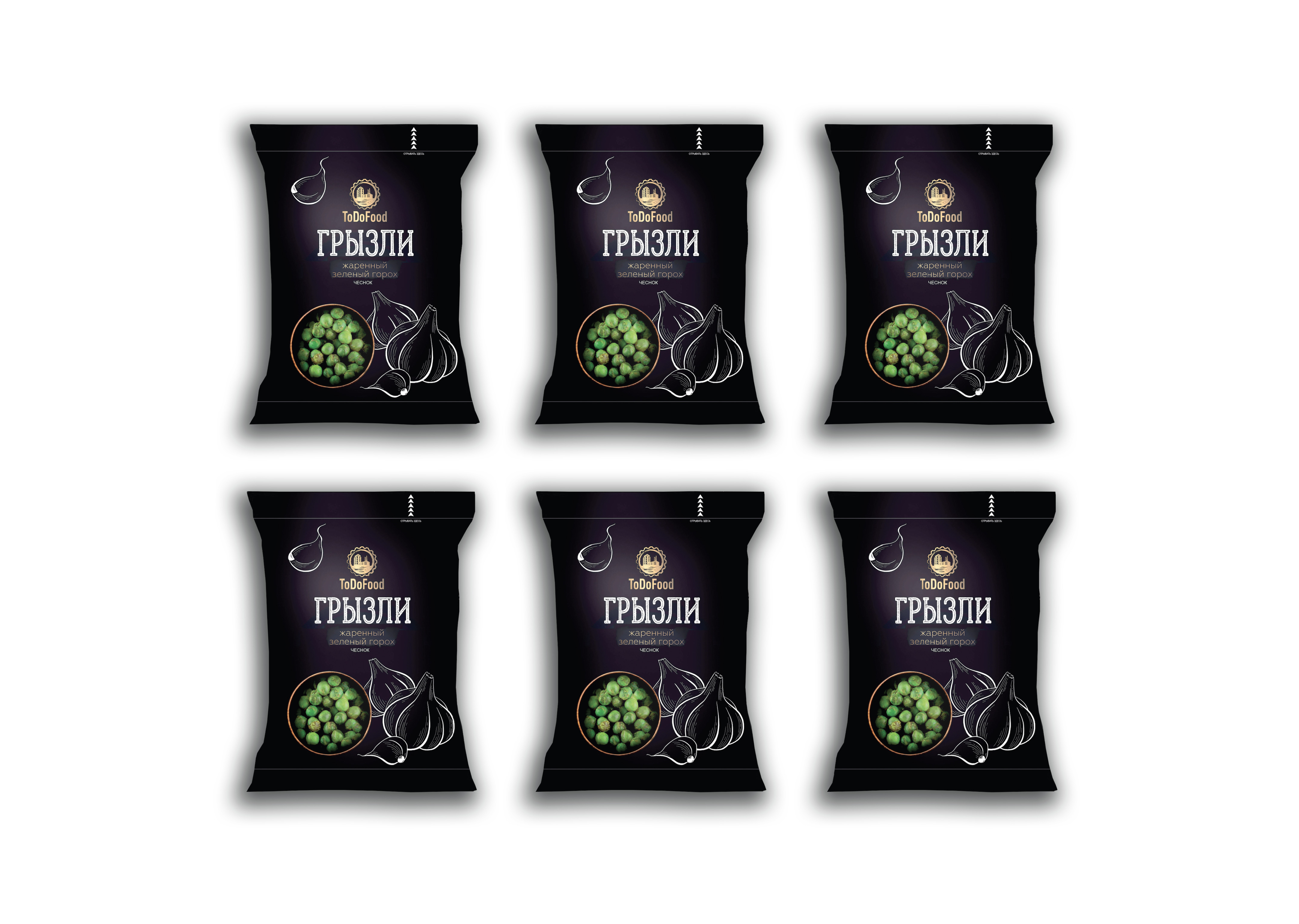 Зелёный горошек "ГРЫЗЛИ" со вкусом чеснока, 6 пачек по 35г/ СНЭК