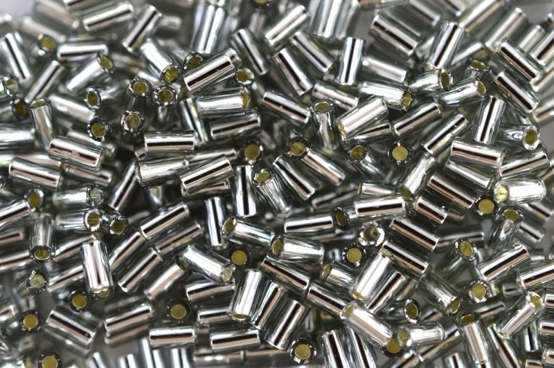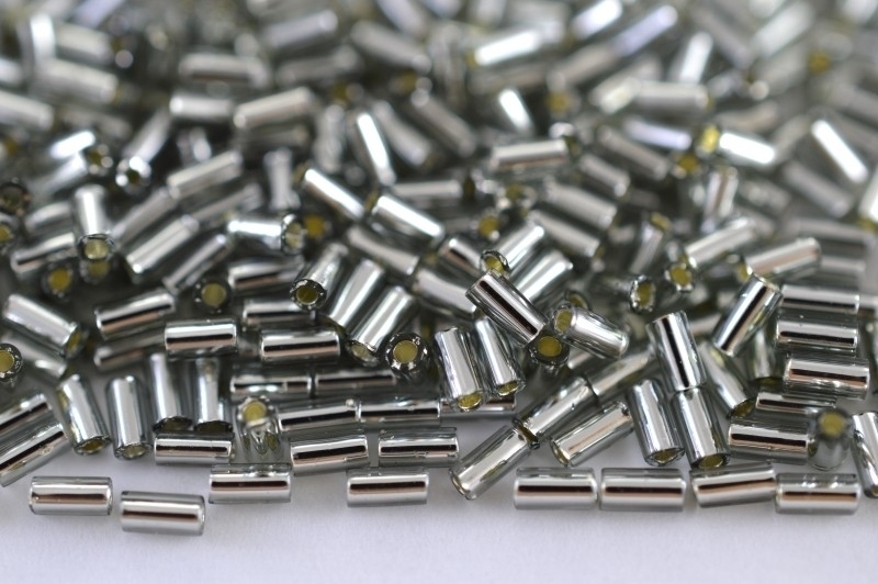 Бисер японский TOHO Bugle стеклярус 3мм #0029 черный алмаз, серебряная линия внутри, 5 грамм