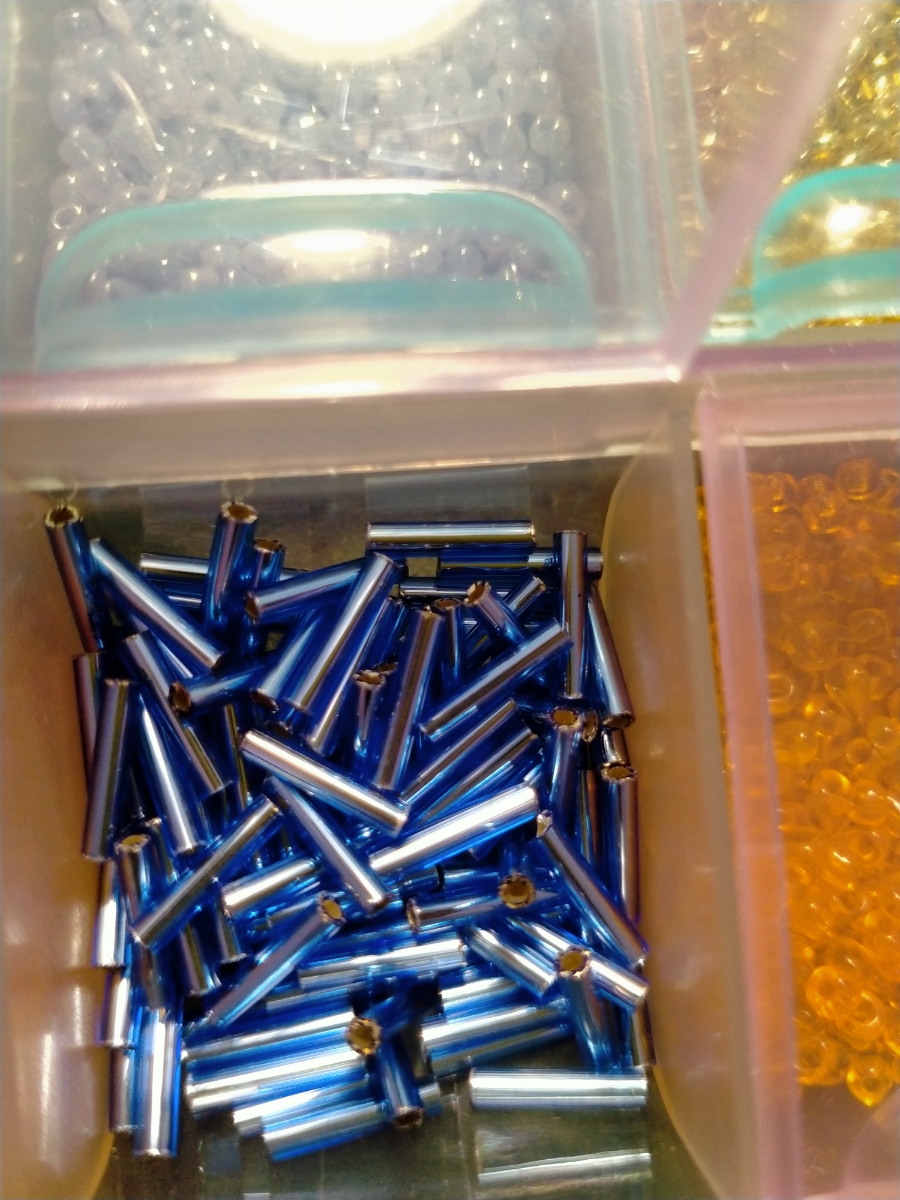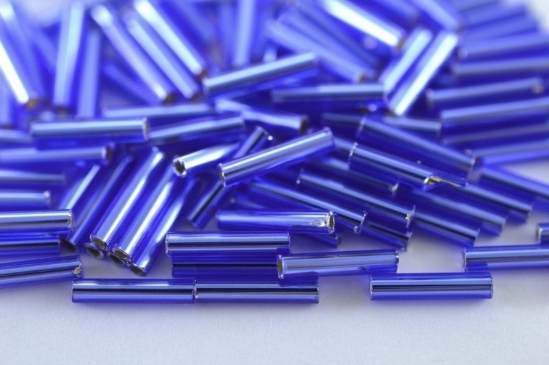 Бисер японский TOHO Bugle стеклярус 9мм #0035 сапфир, серебряная линия внутри, 5 грамм