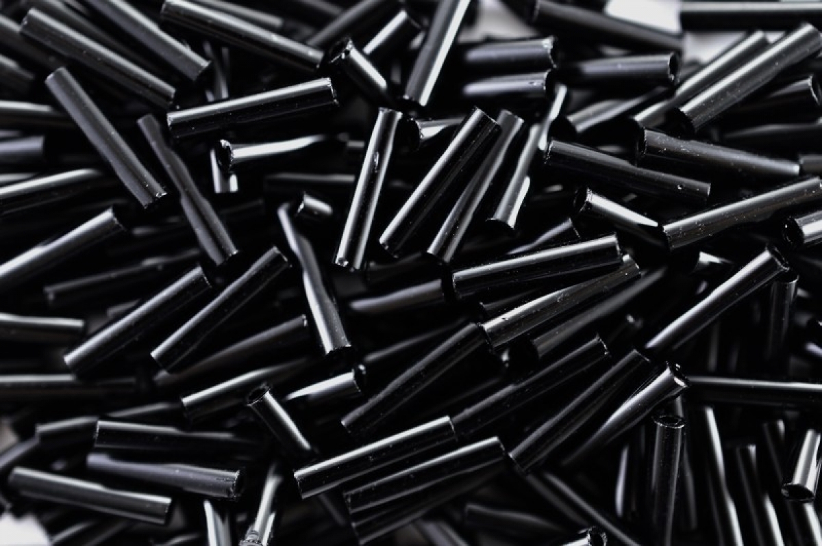 Бисер японский TOHO Bugle стеклярус 9мм #0049 черный, непрозрачный, 5 грамм
