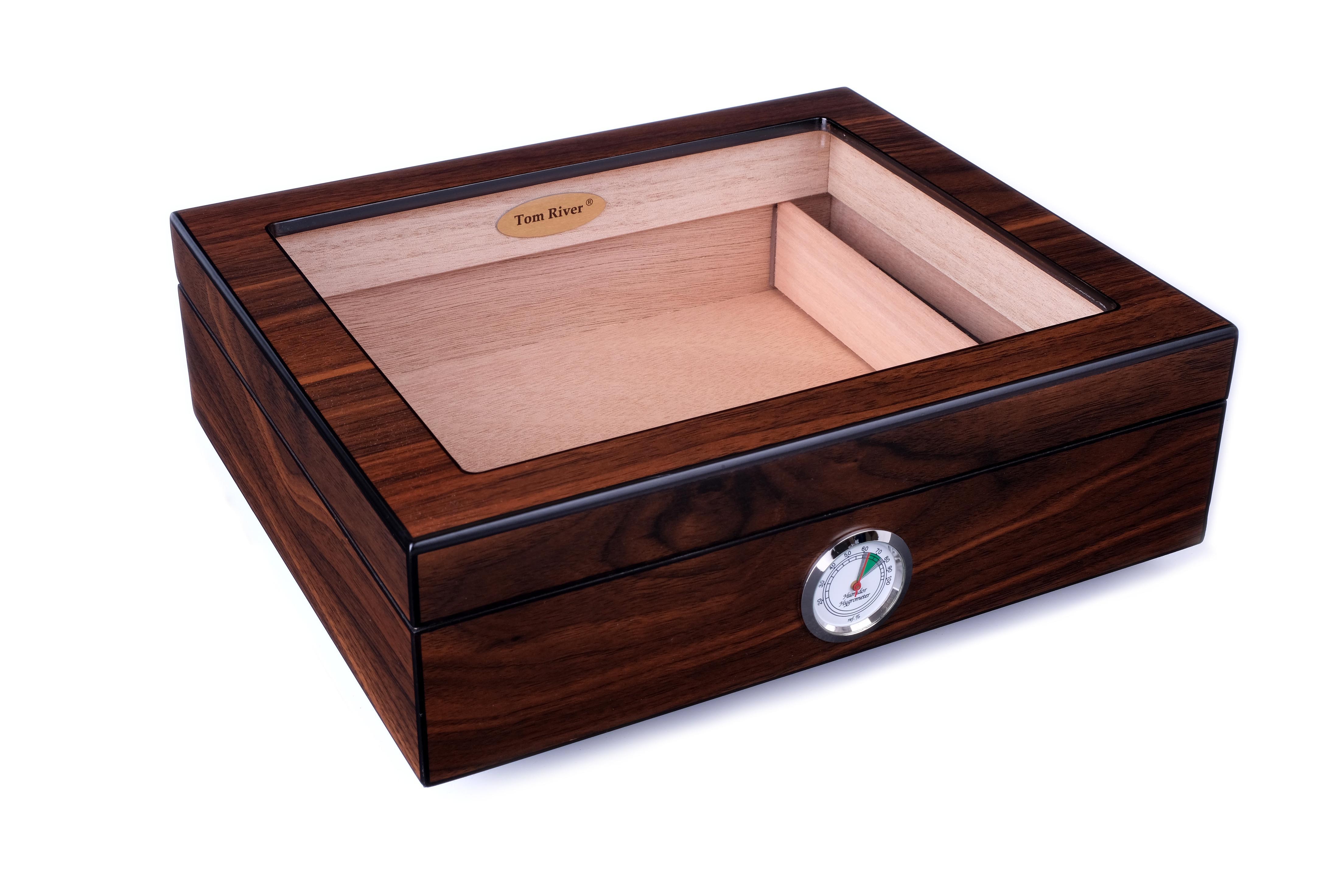 Хьюмидор Tom River со стеклом на 30 сигар, Орех