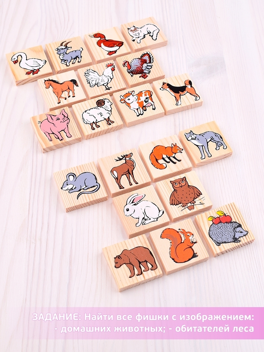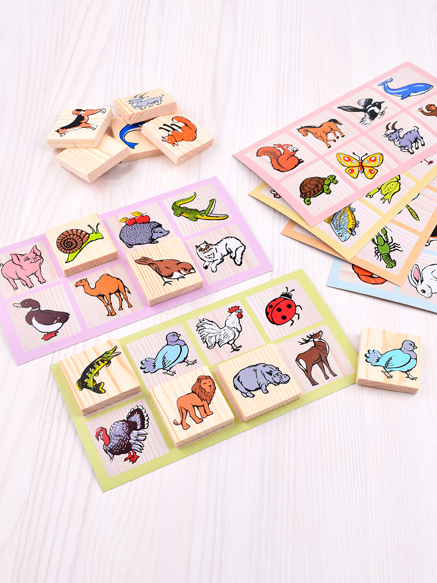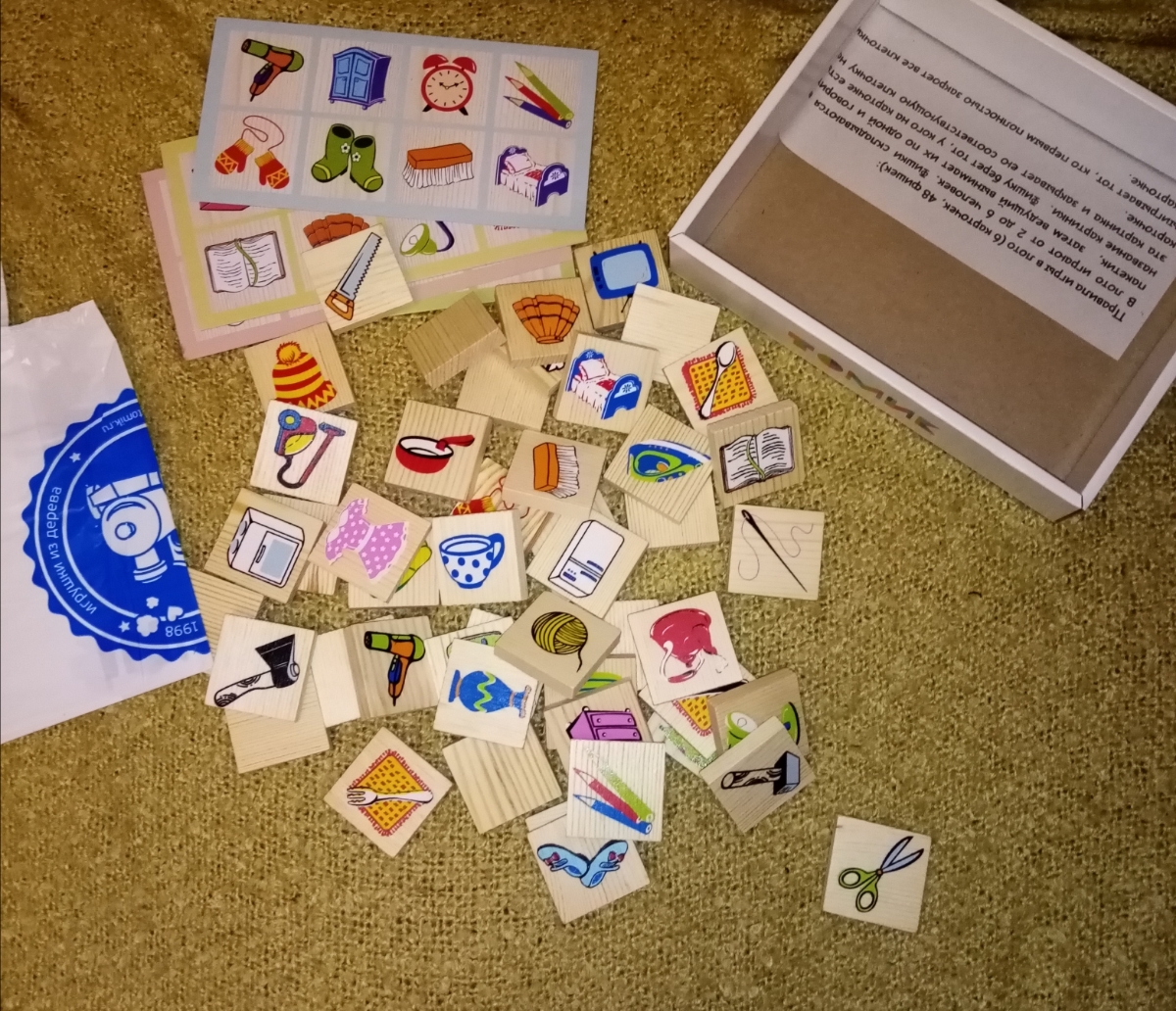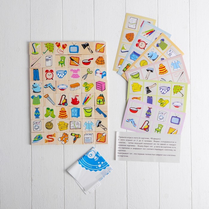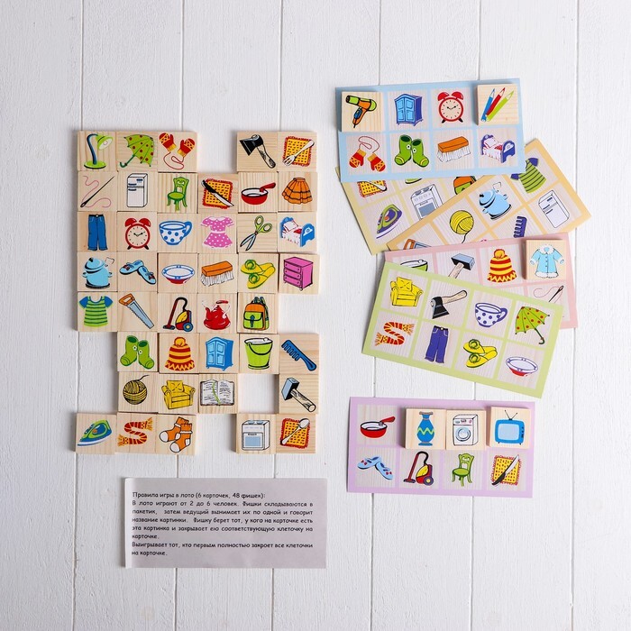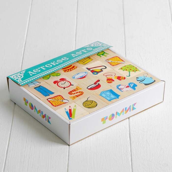 Обучающая игра детское лото Томик "Предметы" из дерева, 48 деталей
