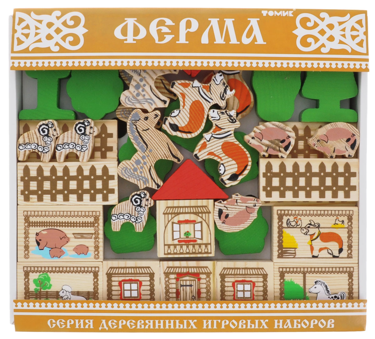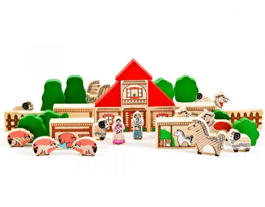 Деревянный конструктор "Ферма", 42 детали, для малышей от 3х лет, Томик