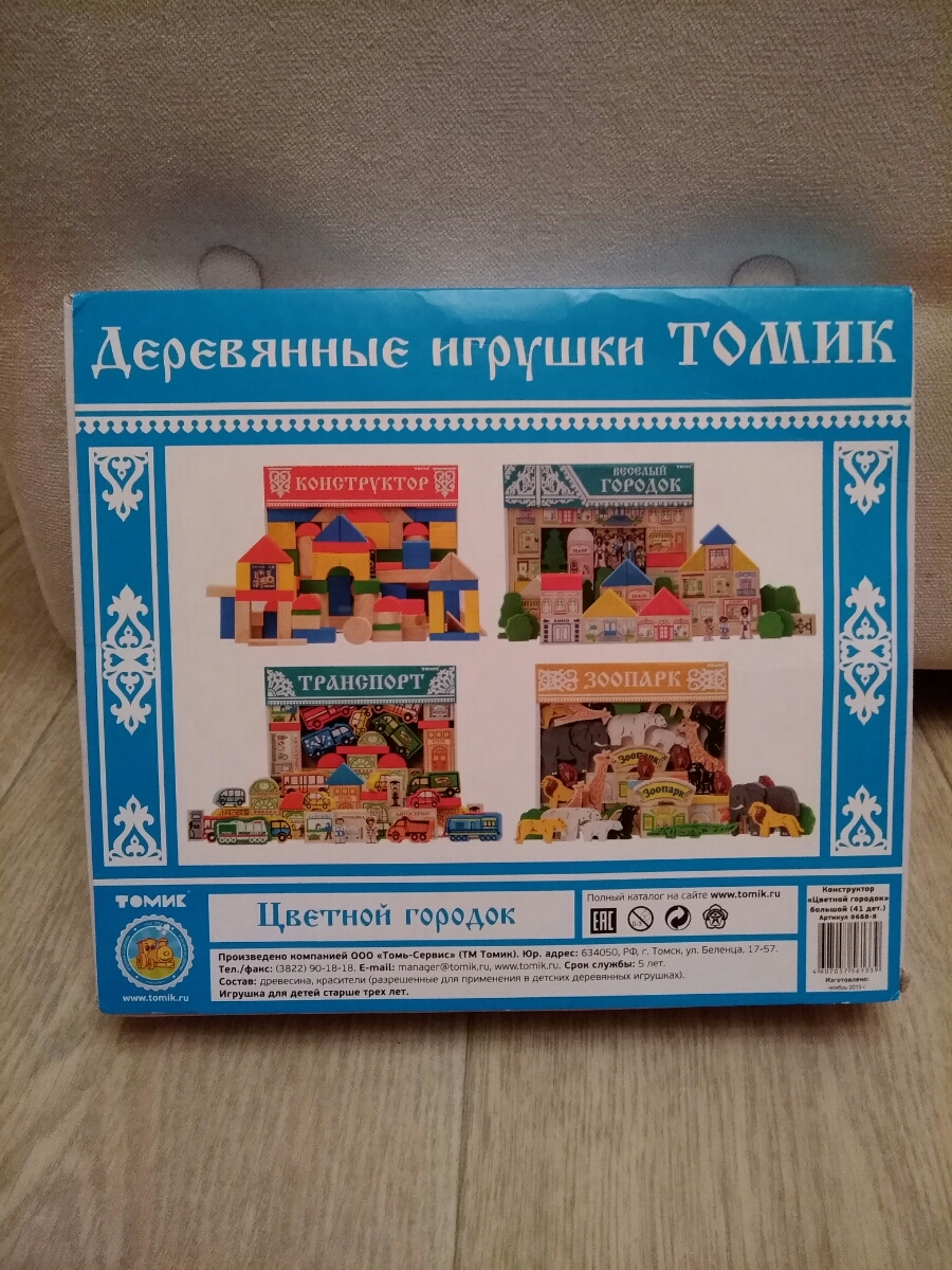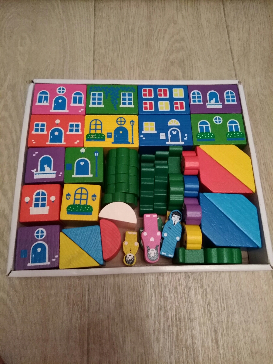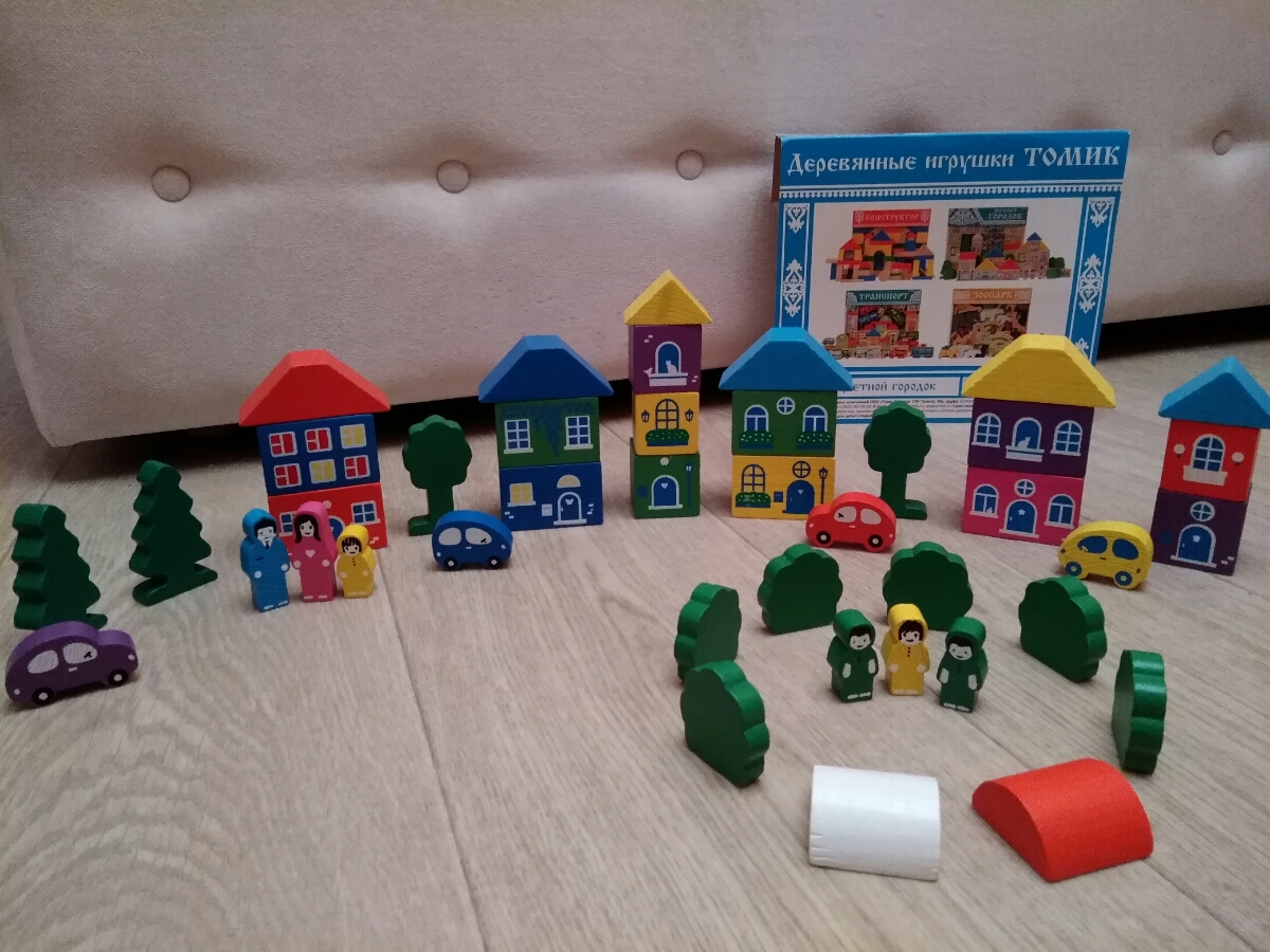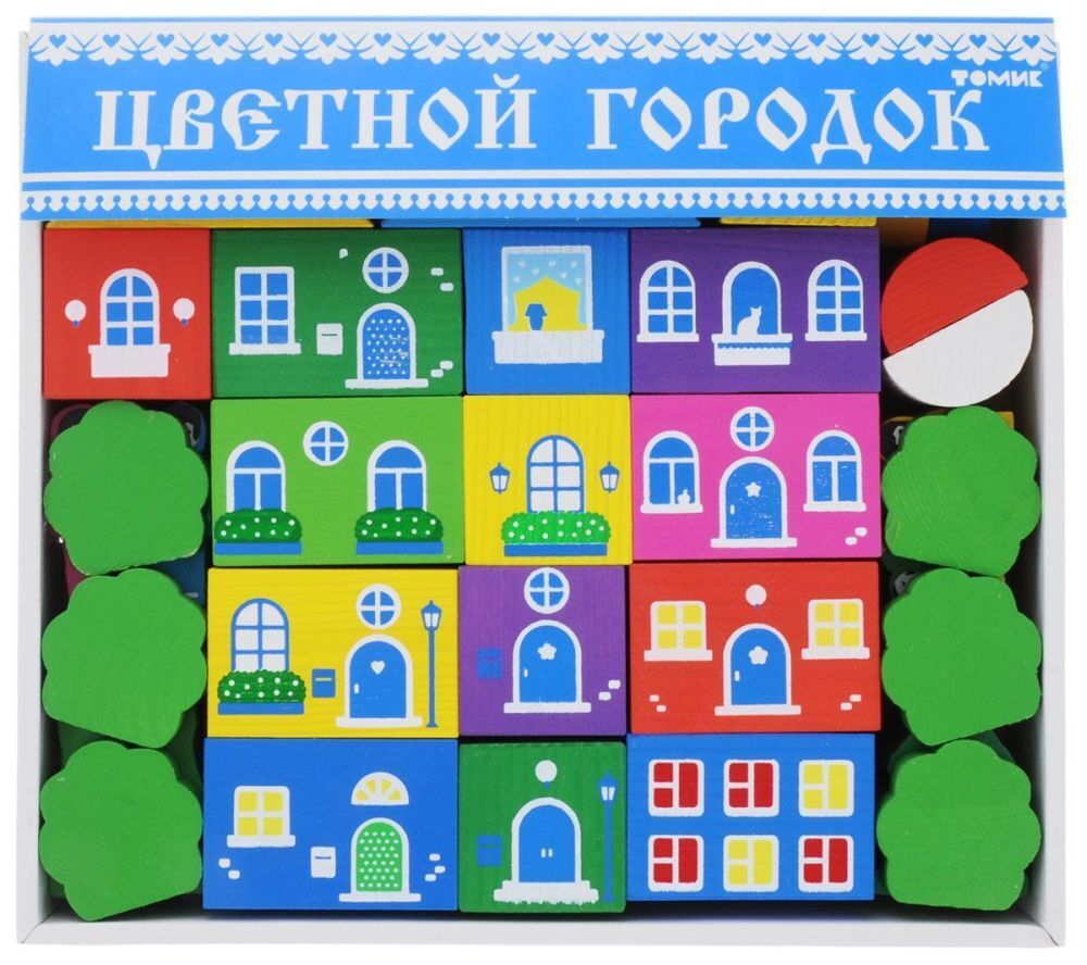Деревянный игровой набор Конструктор Томик "Цветной городок", 41 деталь