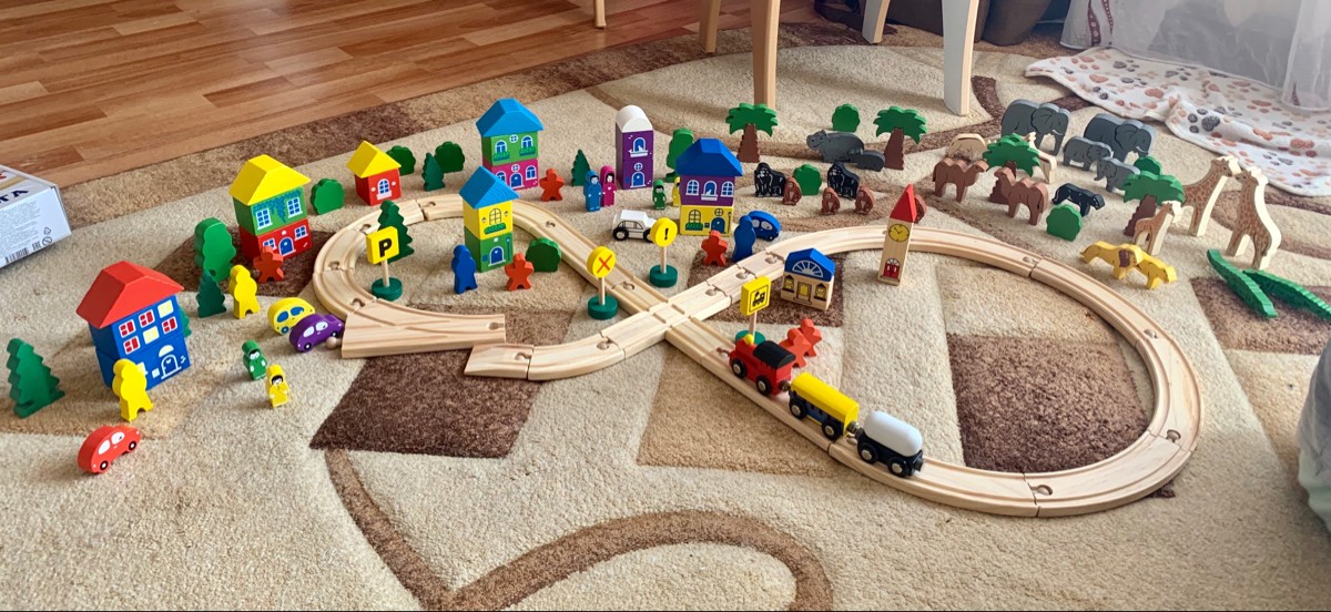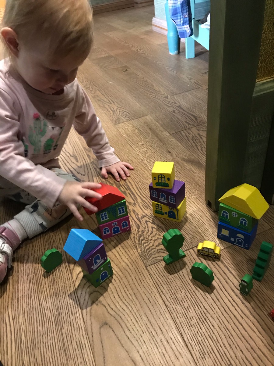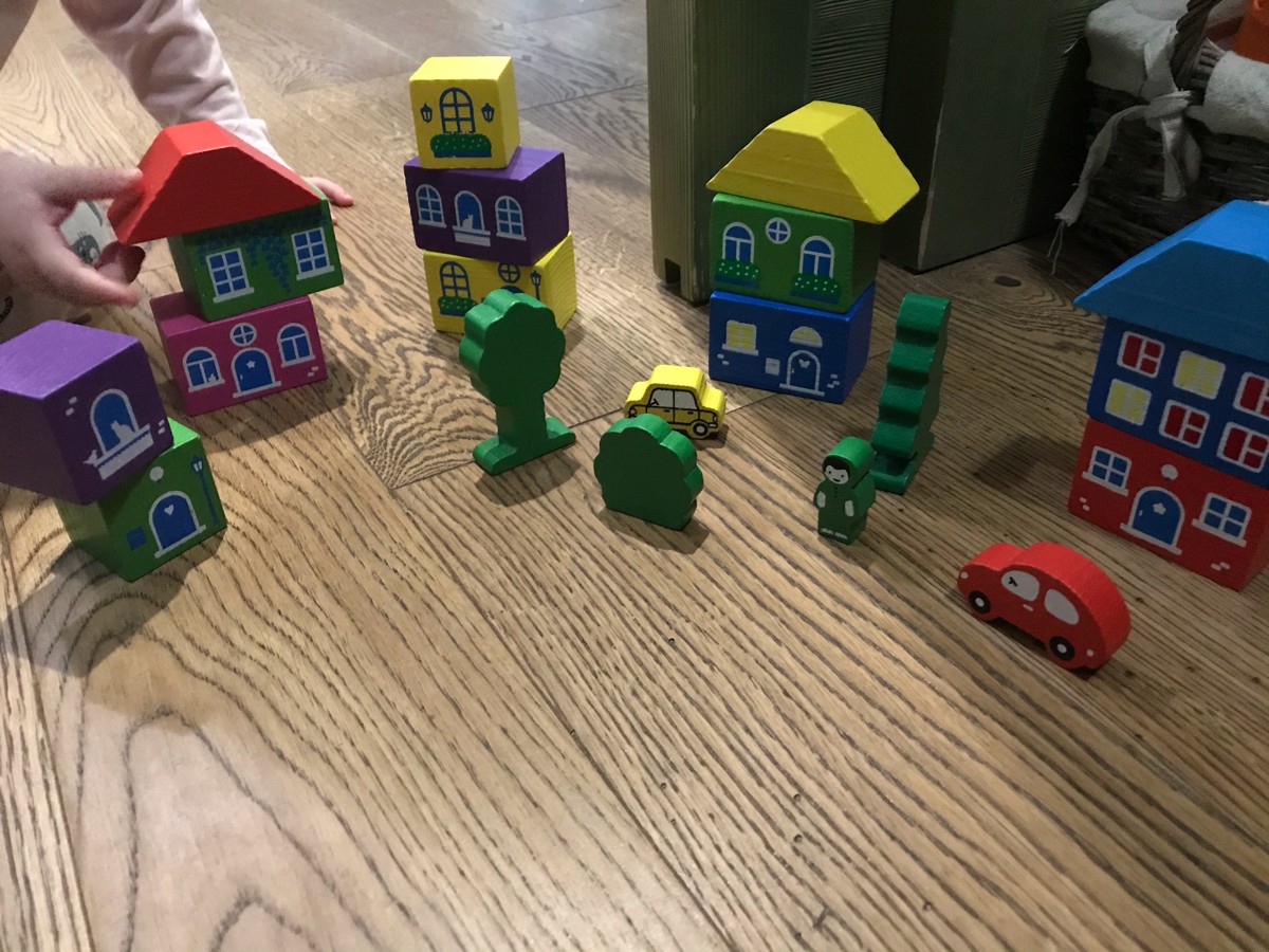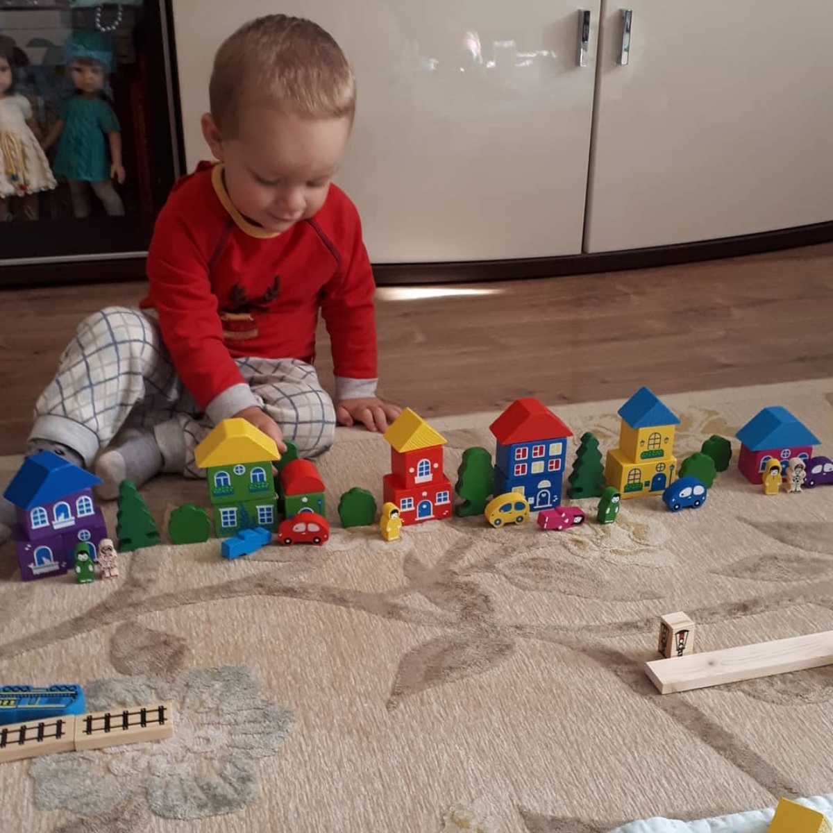 Деревянный игровой набор Конструктор Томик "Цветной городок", 41 деталь
