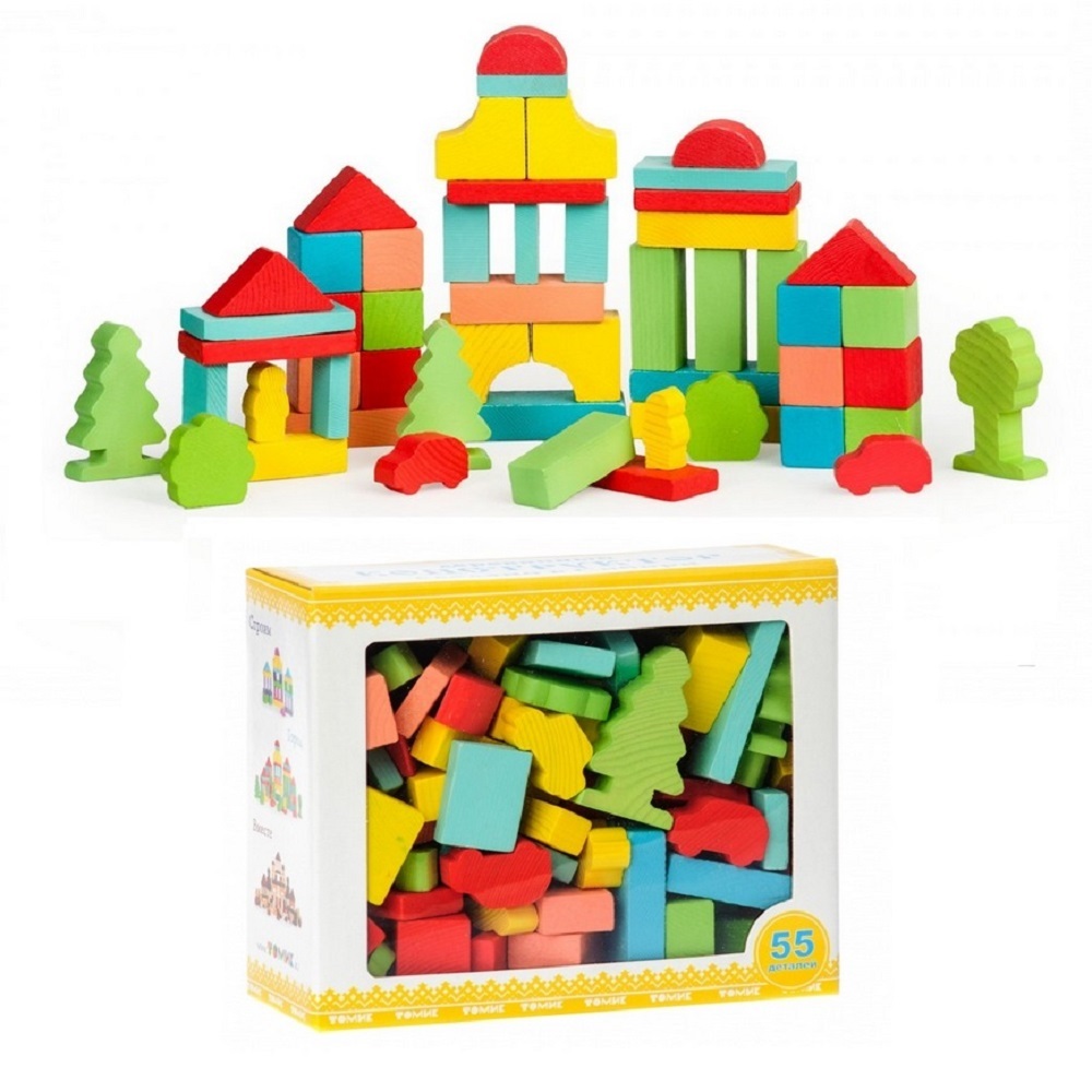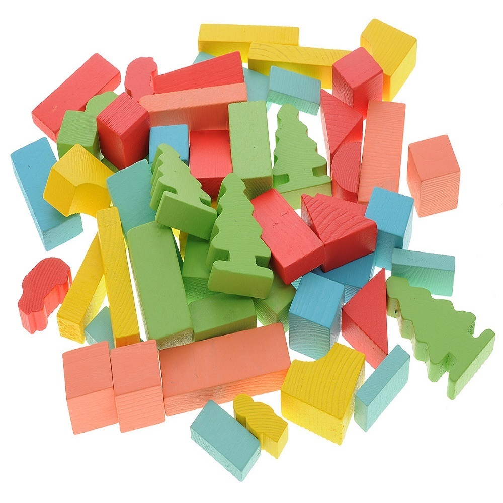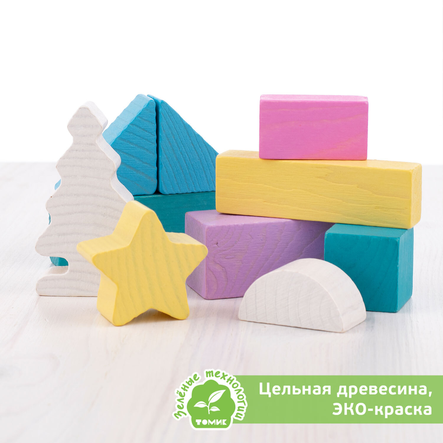 Конструктор деревянный Томик "Цветной Городок" Большой 41 деталь