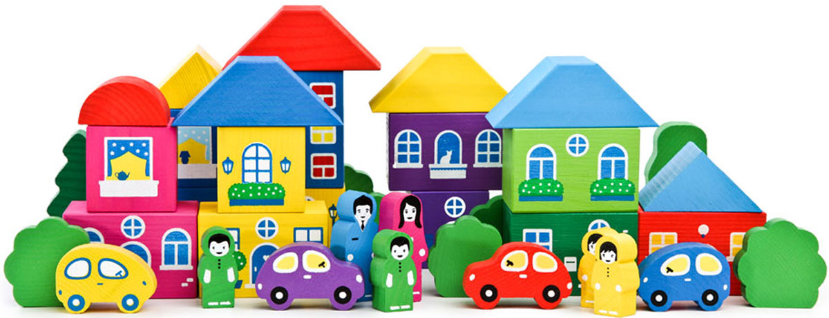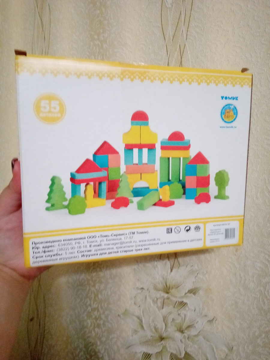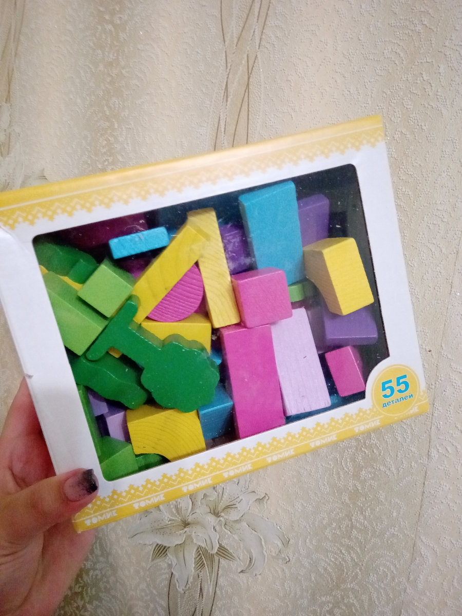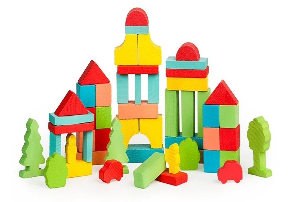 Конструктор деревянный Томик "Цветной Городок" Большой 41 деталь