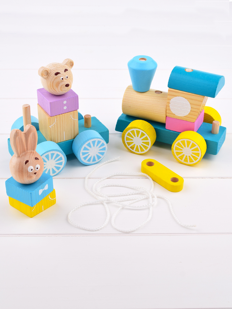 Конструктор Томик Каталка "Паровоз с вагоном" (15 дет.)