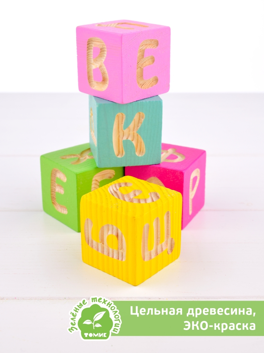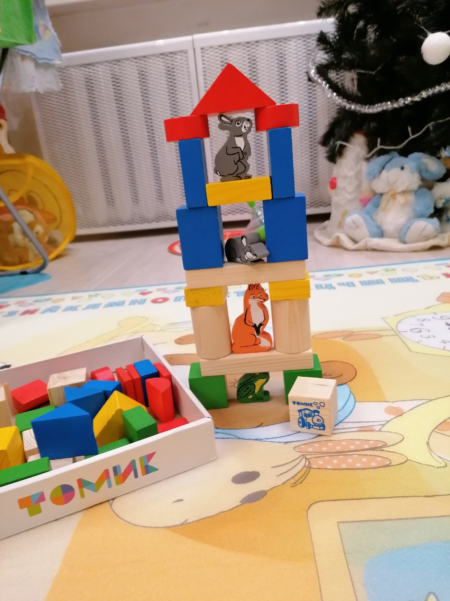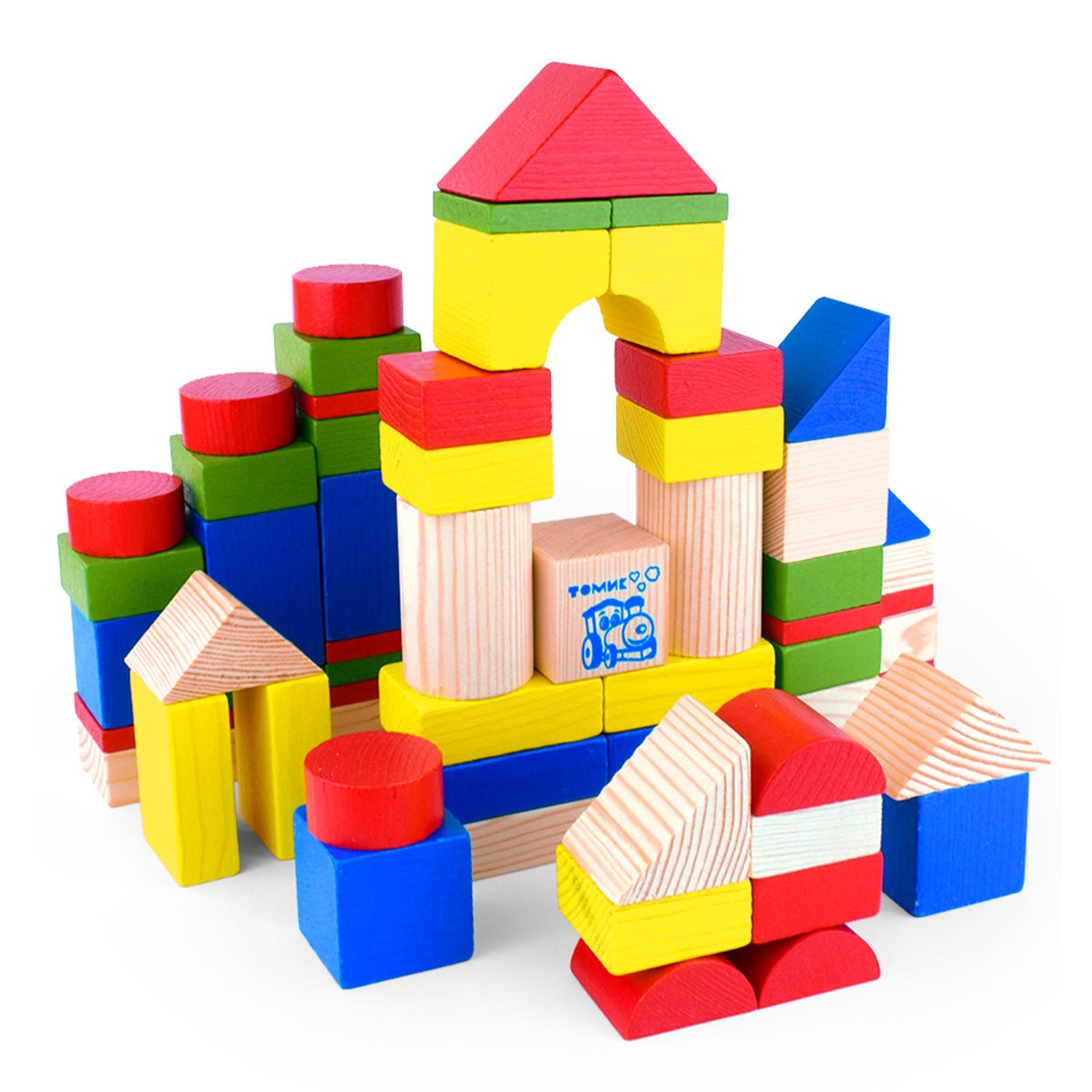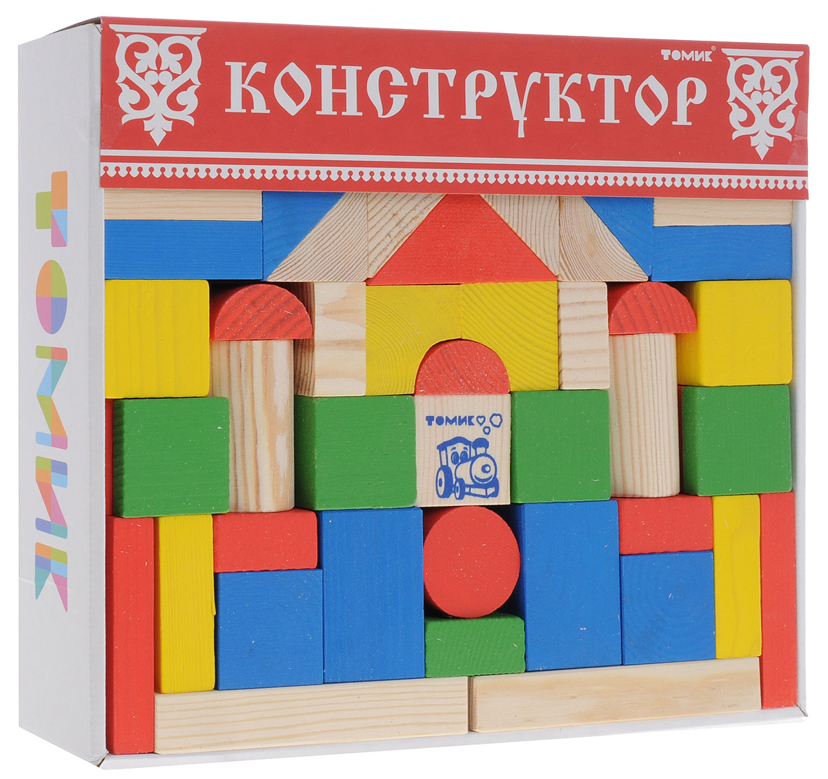 Конструктор деревянный Томик "Цветной Городок" Большой 41 деталь